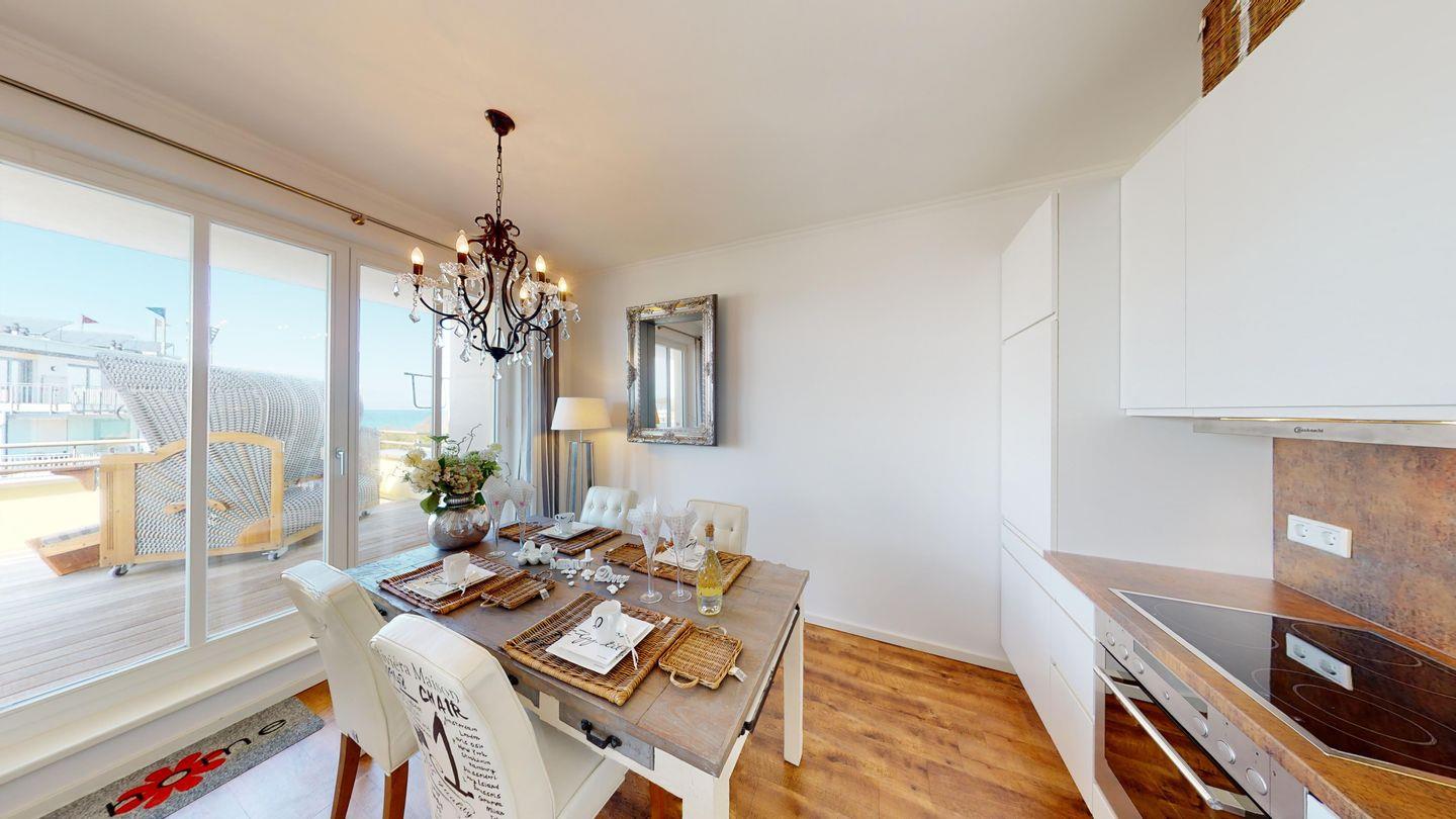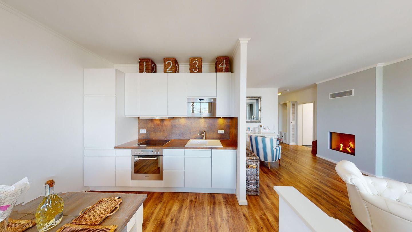 Das Penthouse in der Villa Strandvogt bietet auf ca. 84 m² exklusiven Wohnkomfort mit Meerblick, offenem Wohn- und Küchenbereich, Kamin und eigener Sauna. Genießen Sie den großzügigen Balkon, eine Terrasse mit Gartenmöbeln und den Strandkorb. Ein privater Parkplatz, Aufzug sowie zahlreiche Freizeitmöglichkeiten in der Nähe runden das Angebot ab.
