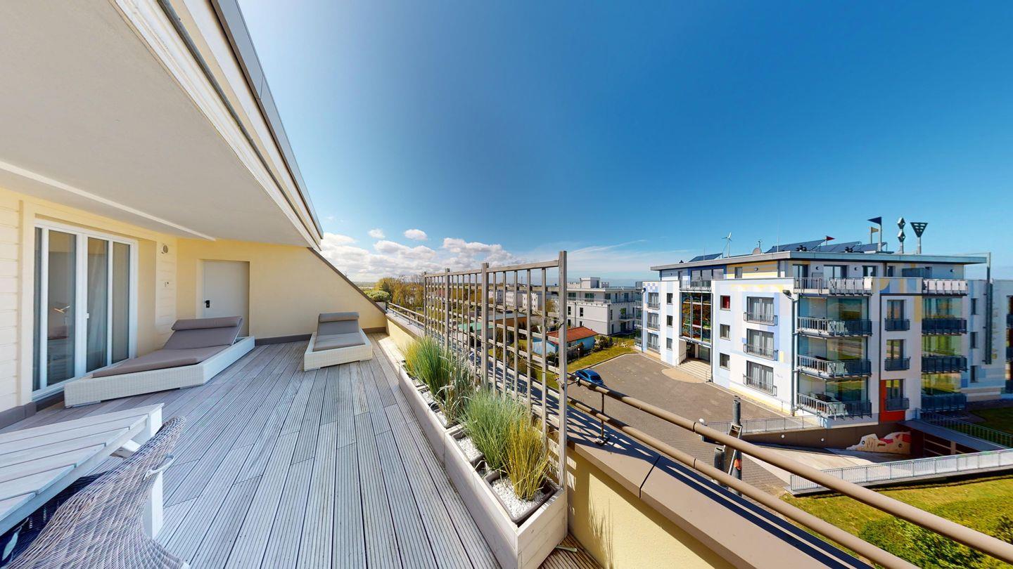 Exklusives Penthouse mit Meerblick, Sauna, Kamin und großer Dachterrasse in Börgerende.