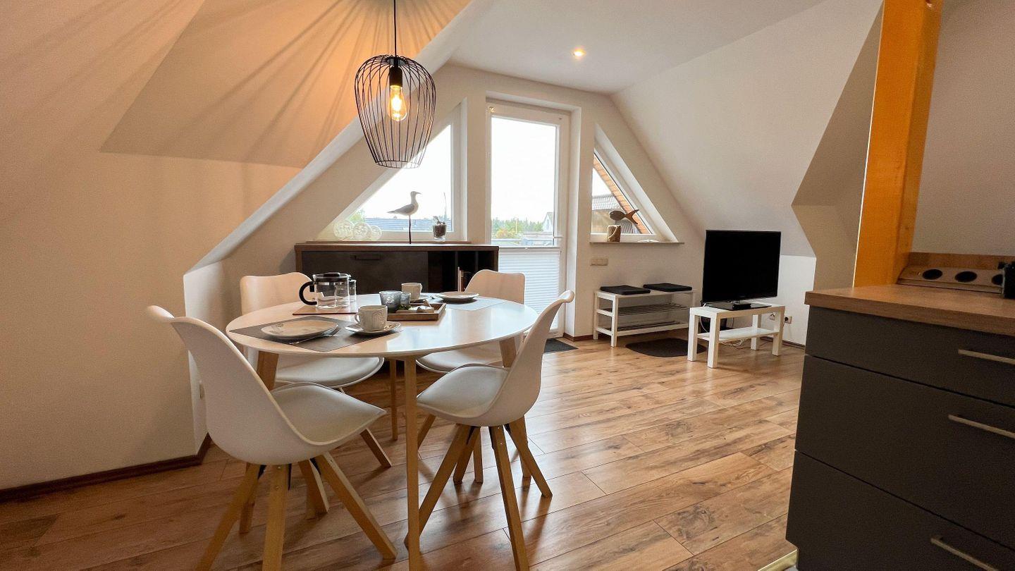 Die im Dachgeschoss gelegene Ferienwohnung Sandkorn wurde 2020 komplett