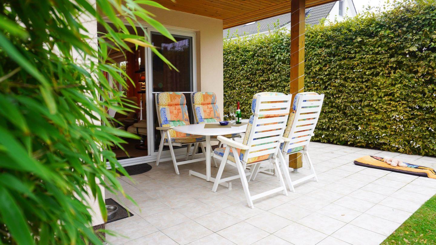 Die teilweise überdachte Westterrasse verwöhnt Sie bis in die späten