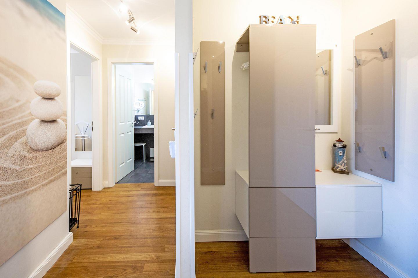 Hier noch einige Hinweise: Es handelt sich um eine Nichtraucherwohnung. HAUSTIERE sind NICHT gestattet. Das WLAN steht kostenfrei in allen Zimmern zur Verfügung. Das Datenvolumen ist unbegrenzt, so dass Sie ohne Limit nach Herzenslust streamen können. Das Netz schwankt aber leider noch, wenn sich viele Nutzer in Börgerende im Internet befinden. Weiterhin befinden sich in der Wohnung ein Garderobenbereich, ein fest verbauter SAFE für Ihre Wertsachen und zwei Abstellräume, in denen Sie bequem zusätzliche Dinge unterbringen können - auch die leeren Koffer. Hier finden Sie auch ein Bügelbrett und Dampfbügeleisen. Wäschesets, Kinderreisebett und Kinderhochstuhl können kostenpflichtig zugebucht werden. Ab der dritten Person wird ein Aufschlag in Höhe von 15,00 €/ÜN berechnet. Die Unterkunft befindet sich wenige Meter vom Badestrand entfernt in ruhiger Lage zur Promenade. Kein Autoverkehr!