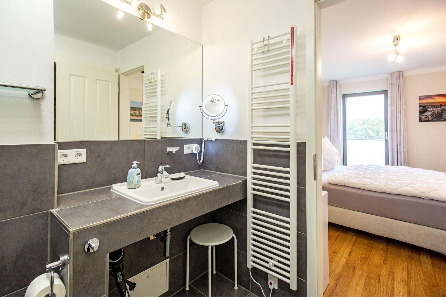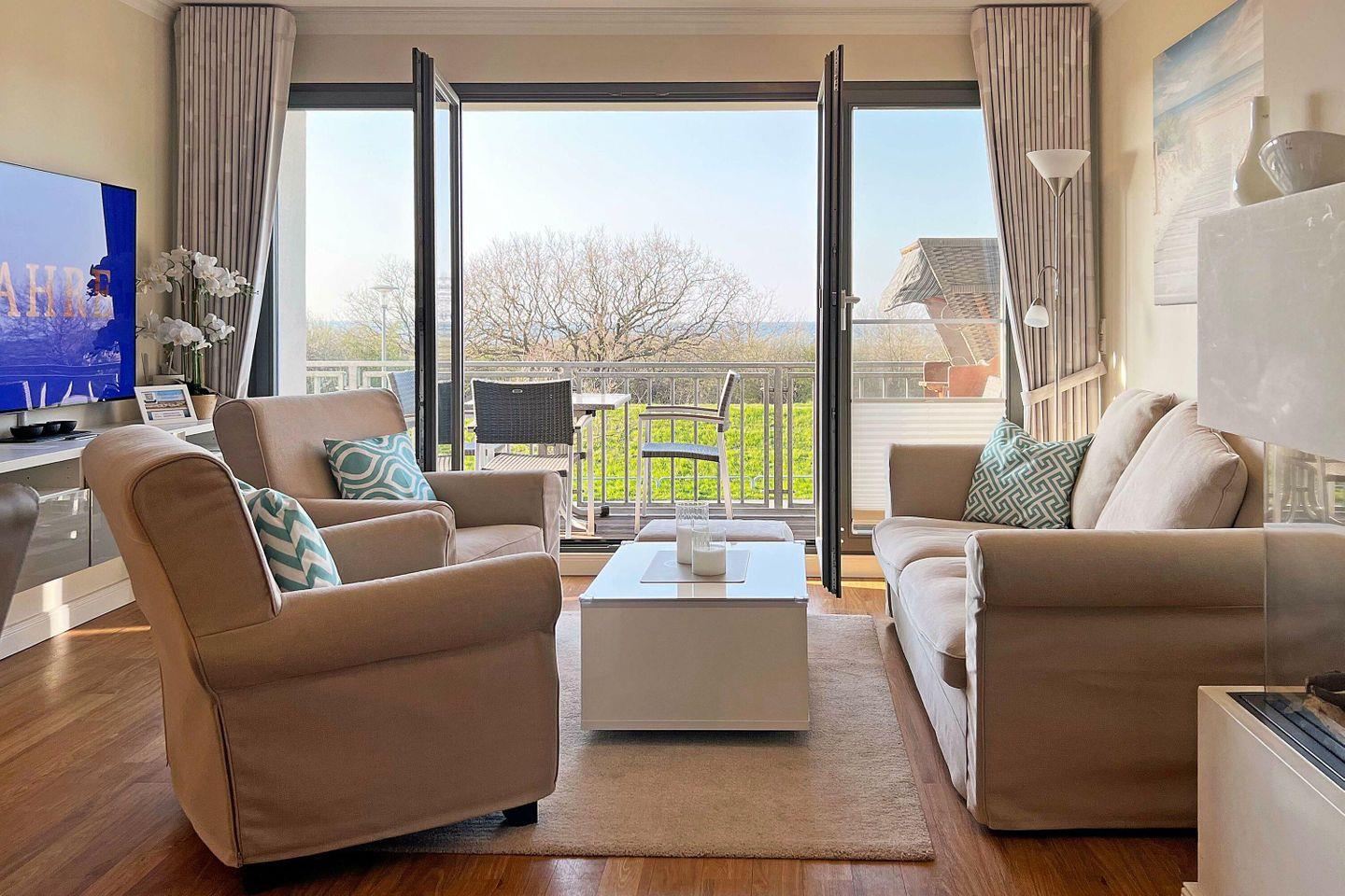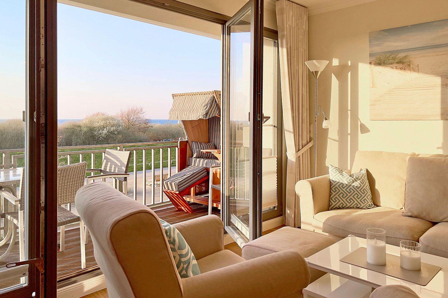 STRANDNAHE, GROSSE 3-RAUMWOHNUNG FÜR MAX. 5 PERSONEN, 2 SCHLAFRÄUME, 2 BÄDER, BALKON MIT STRANDKORB UND OSTSEEBLICK IM 1. OG.