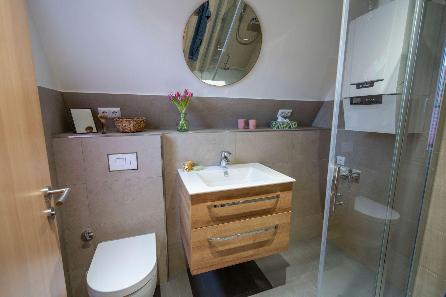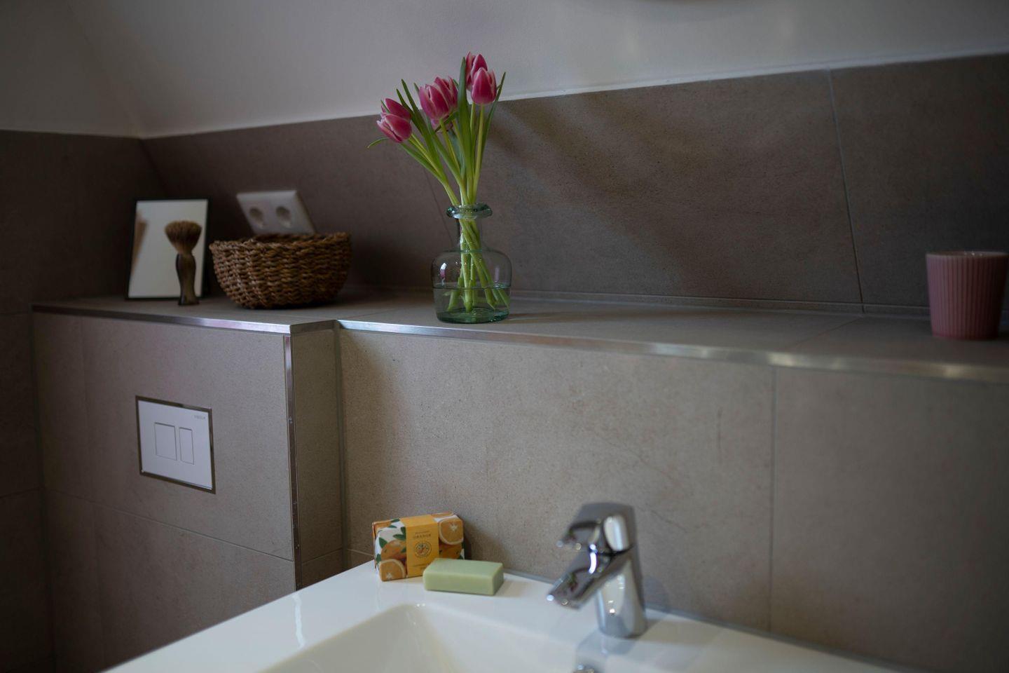 Erdtönen und eine ebenerdige Dusche sorgen für Ihr Wohlbefinden.