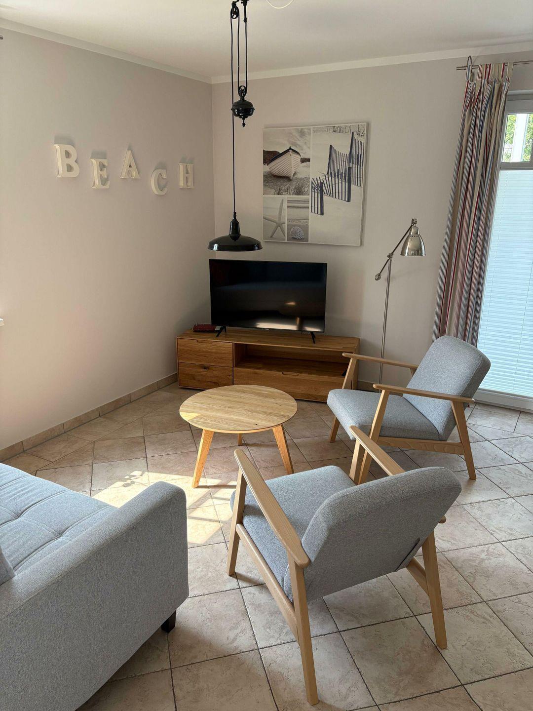 WUNDERSCHÖNE 3-RAUM-OSTSEE-FEWO „BOJE 21“ FÜR MAX. 4 PERSONEN, 2 SCHLAFRÄUMEN, KAMIN UND TERRASSE, 200 M ZUM STRAND IM PARTERRE