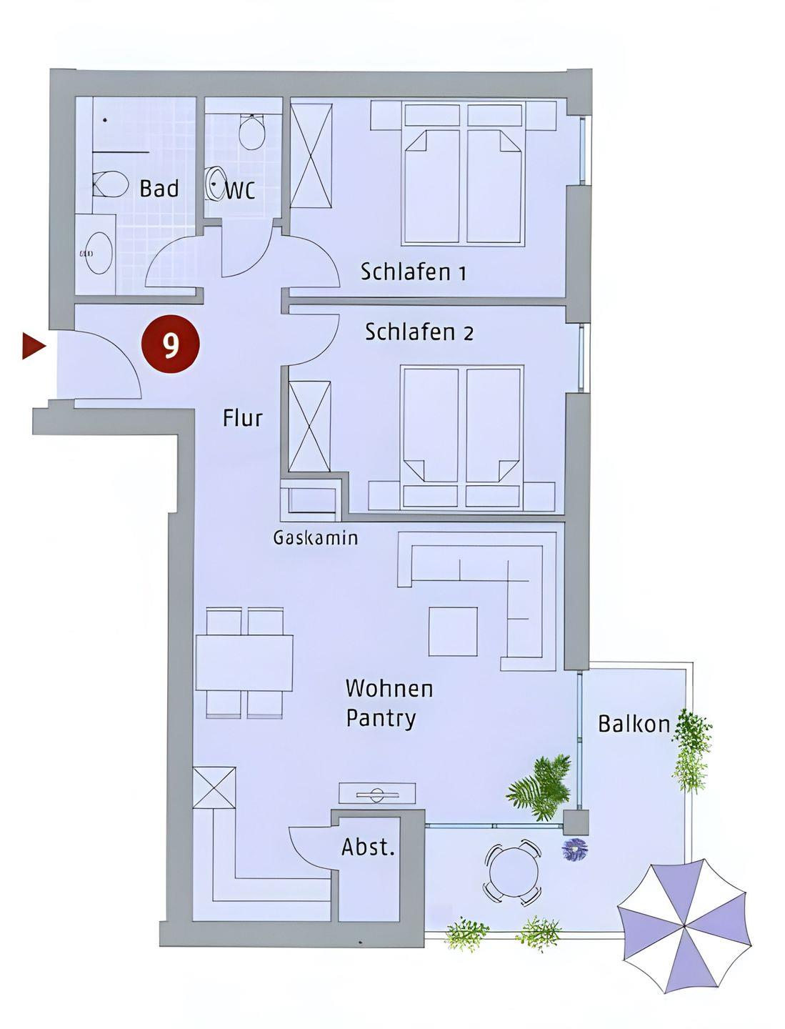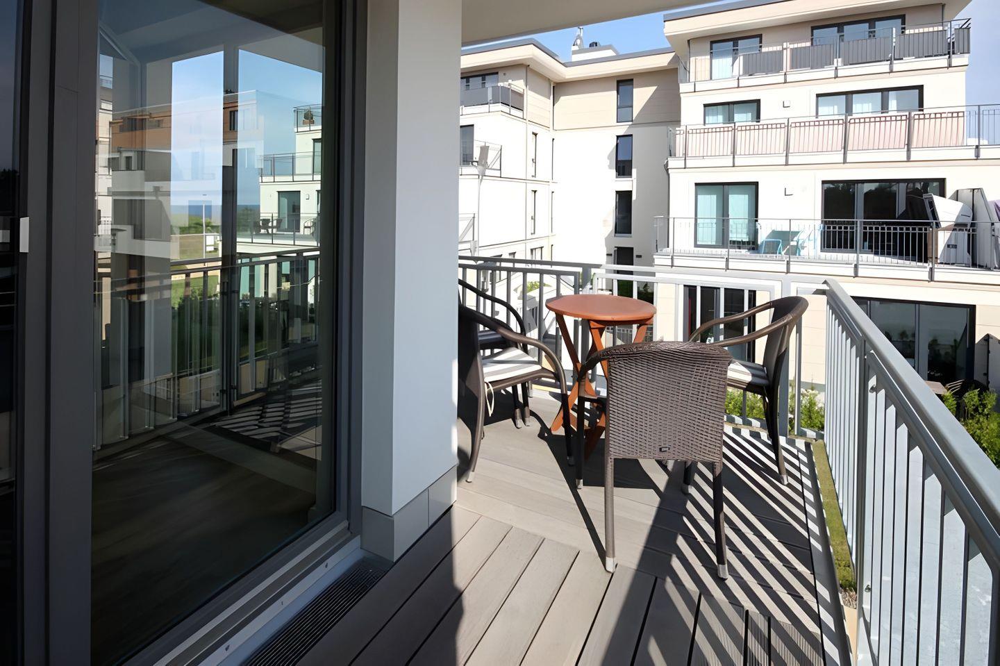 Die Villa Deichgraf WE 09 in Börgerende bietet komfortablen Meerblick, Balkon und Kamin in strandnaher Lage.