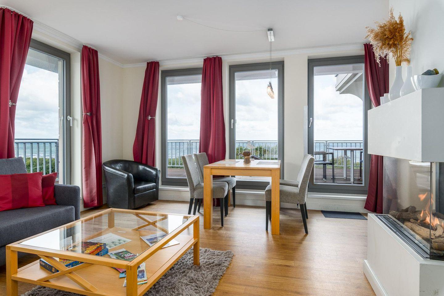 Genießen Sie das stilvolle Penthouse mit Terrasse, Kamin und atemberaubendem Panorama-Meerblick in Börgerende.