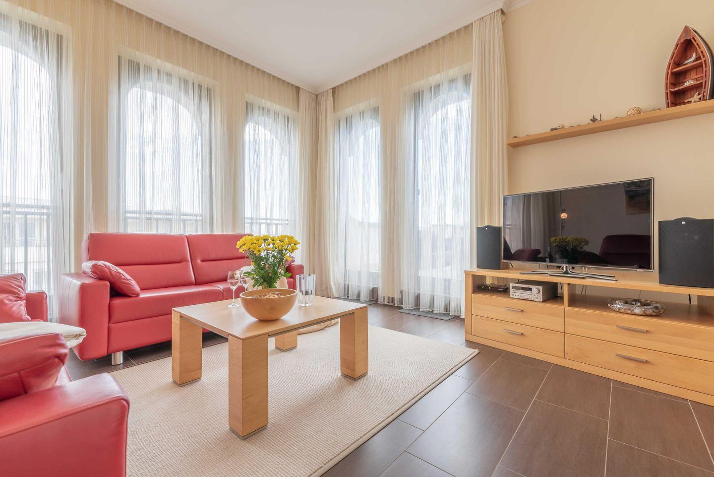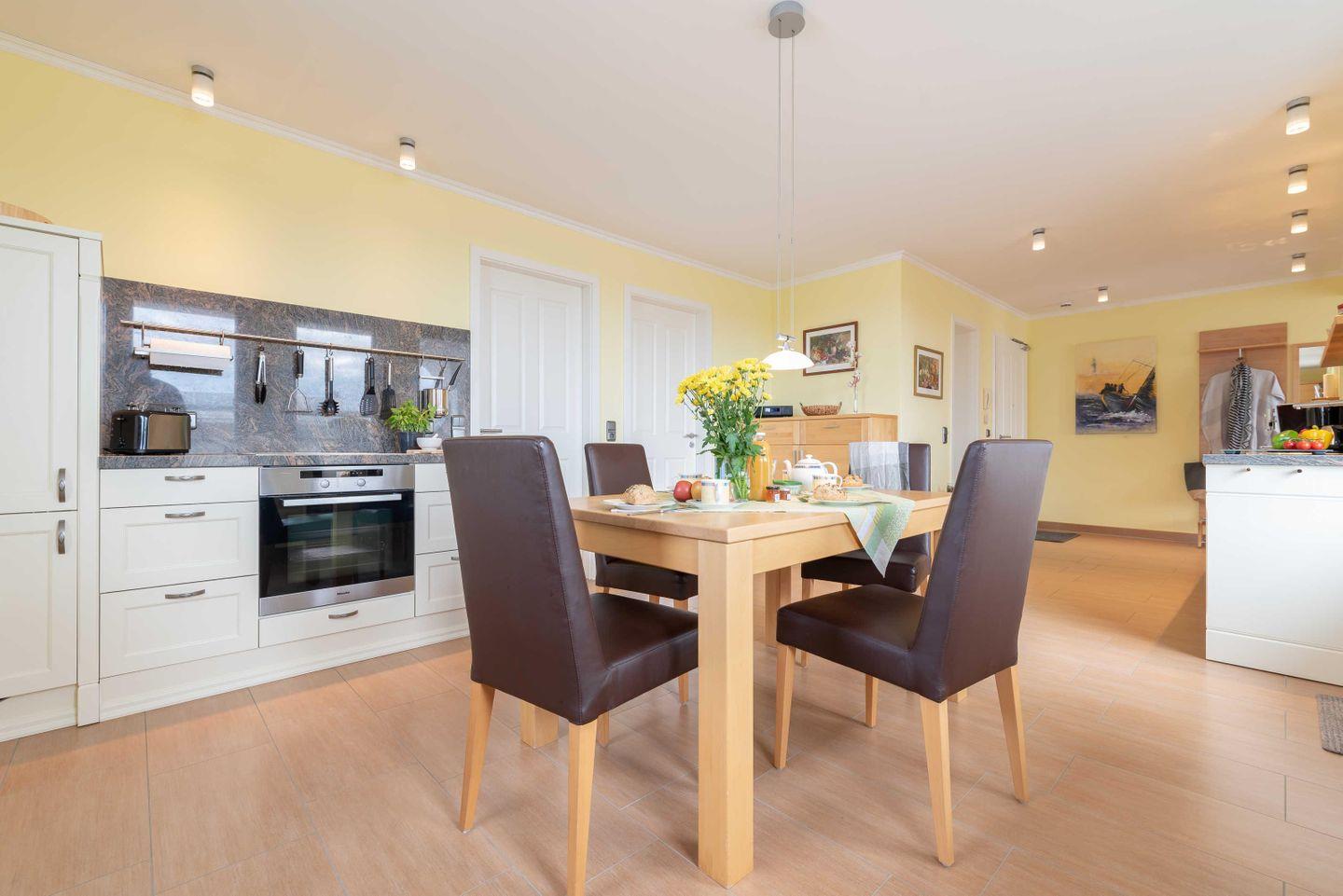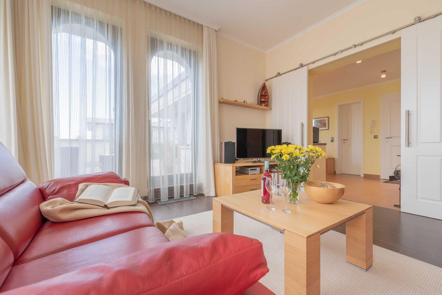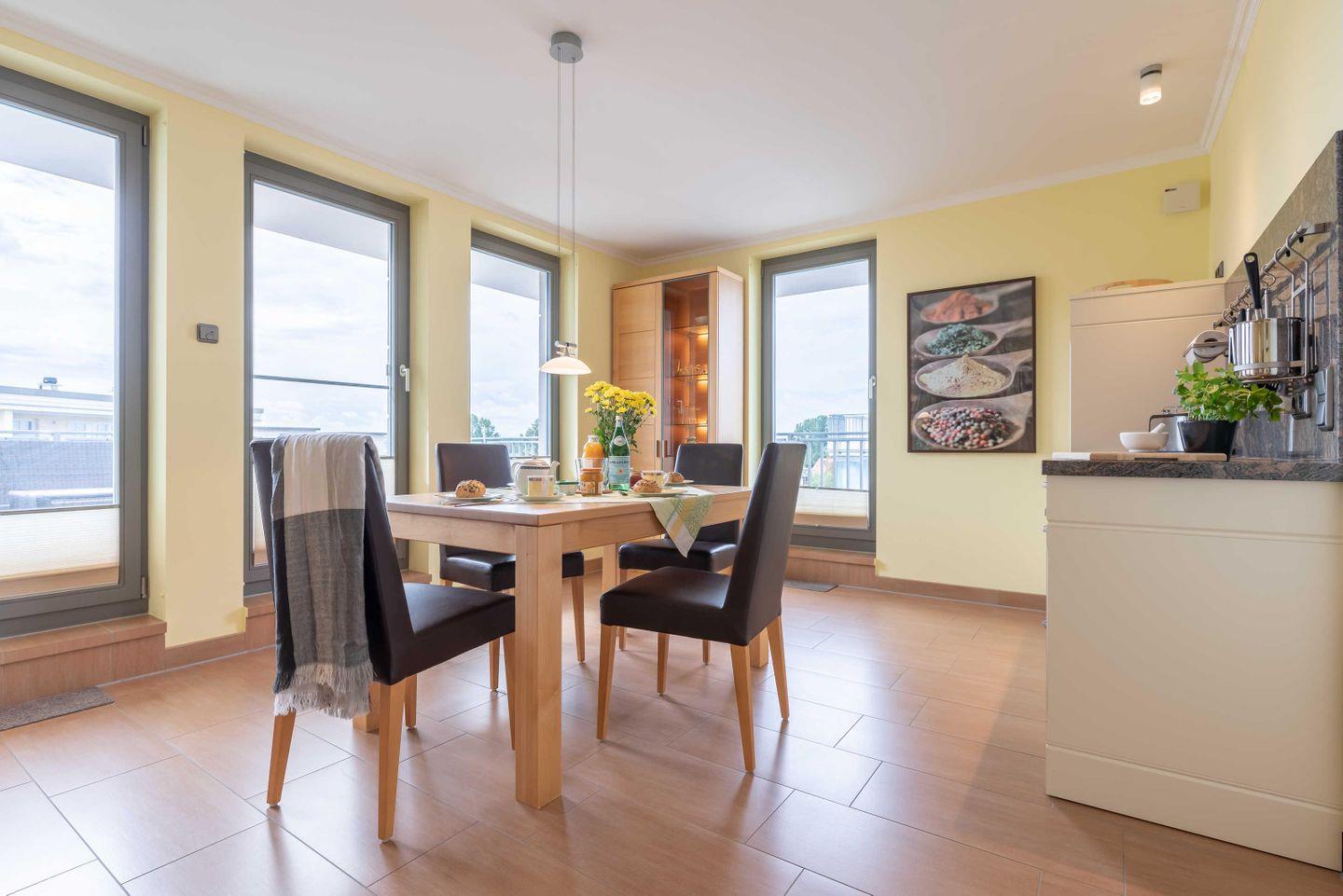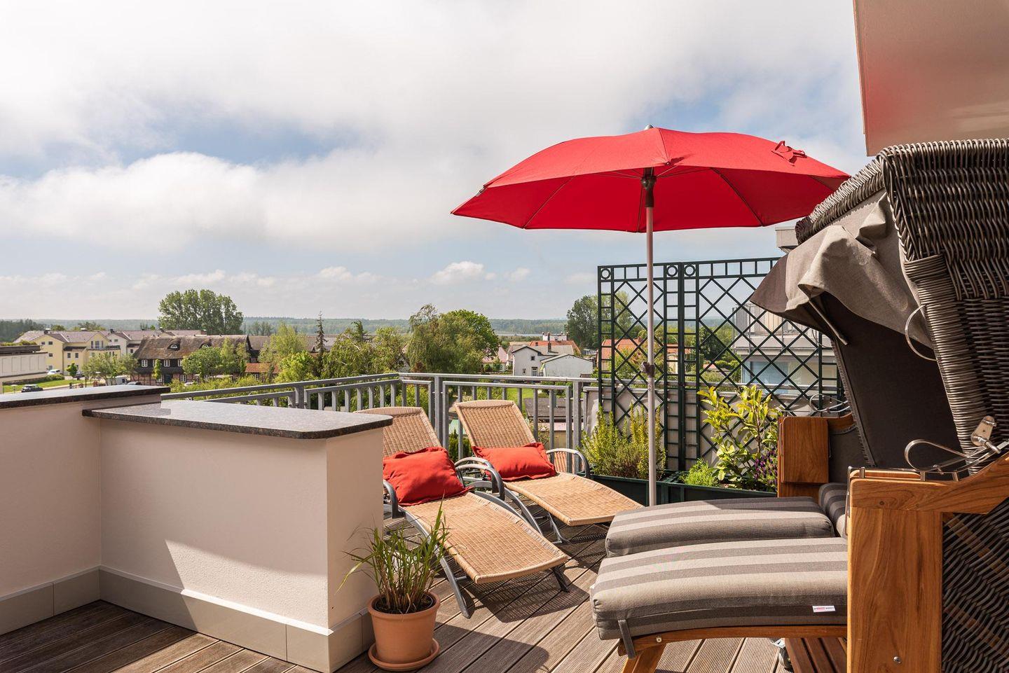 Modernes Penthouse in Börgerende mit Dachterrasse und seitlichem Meerblick.