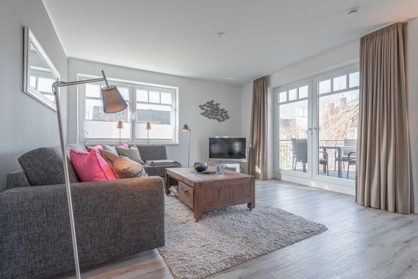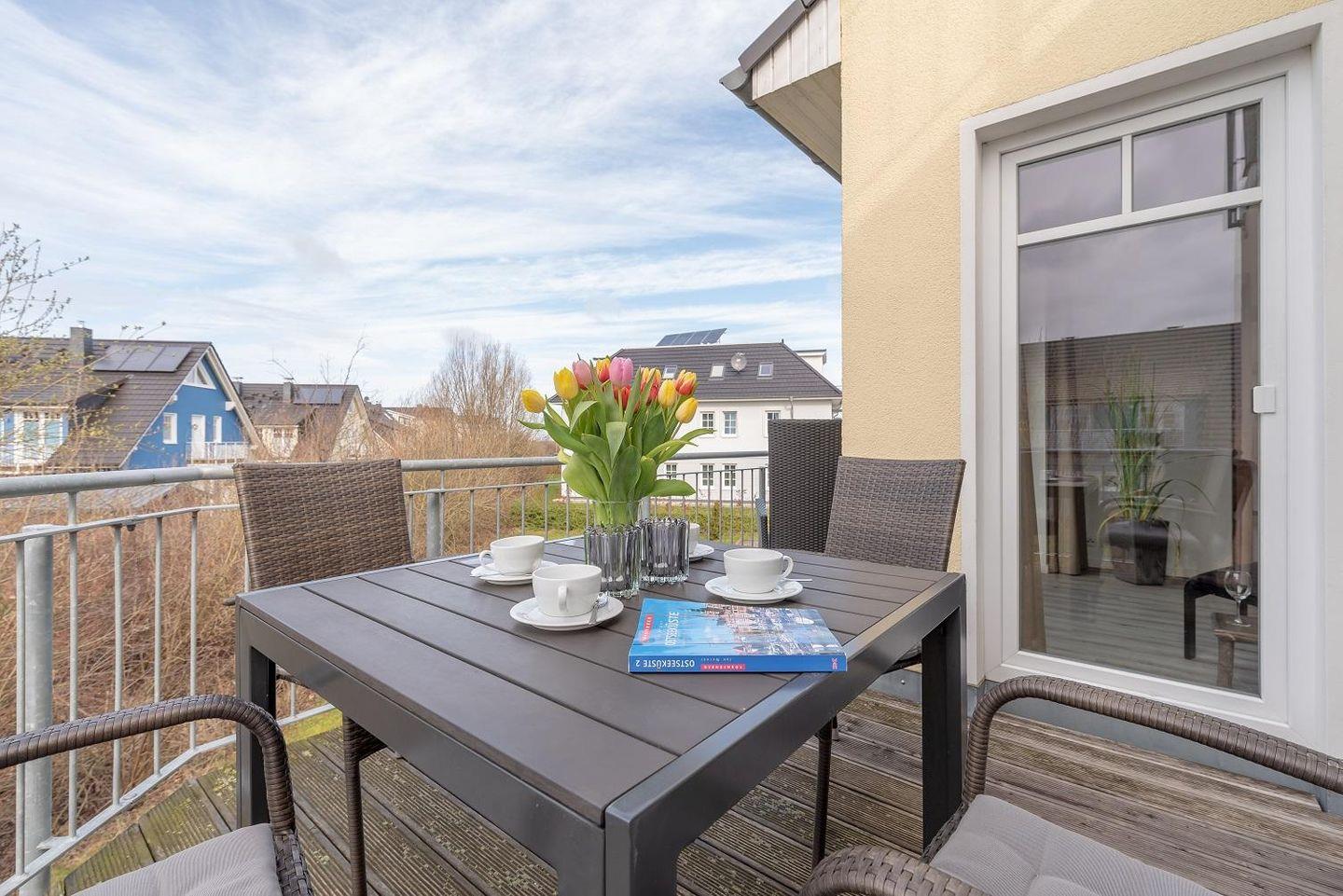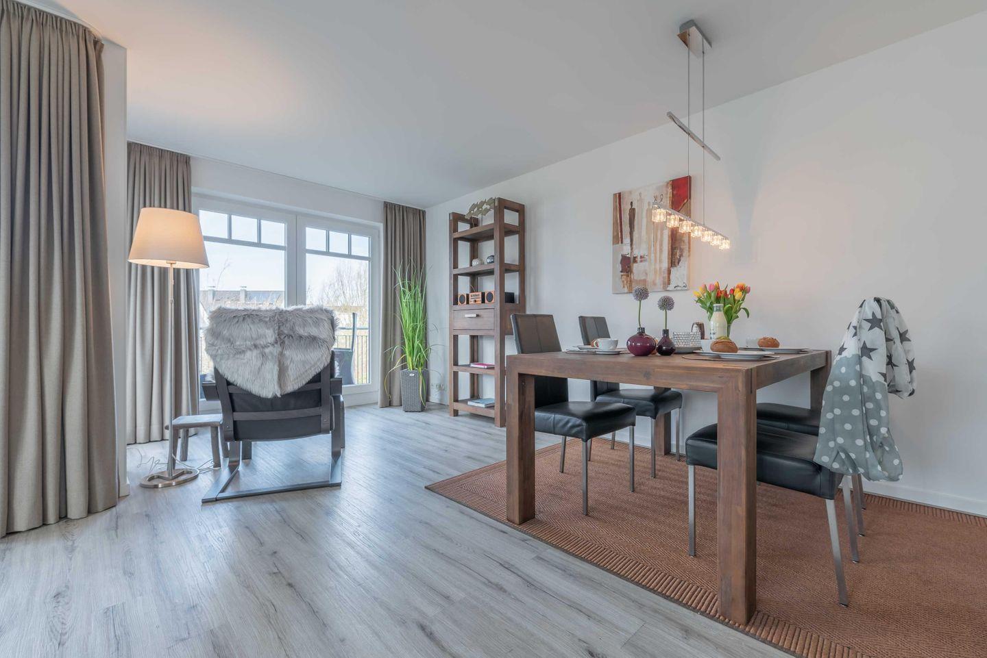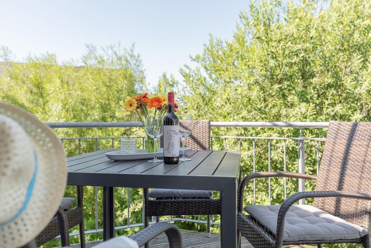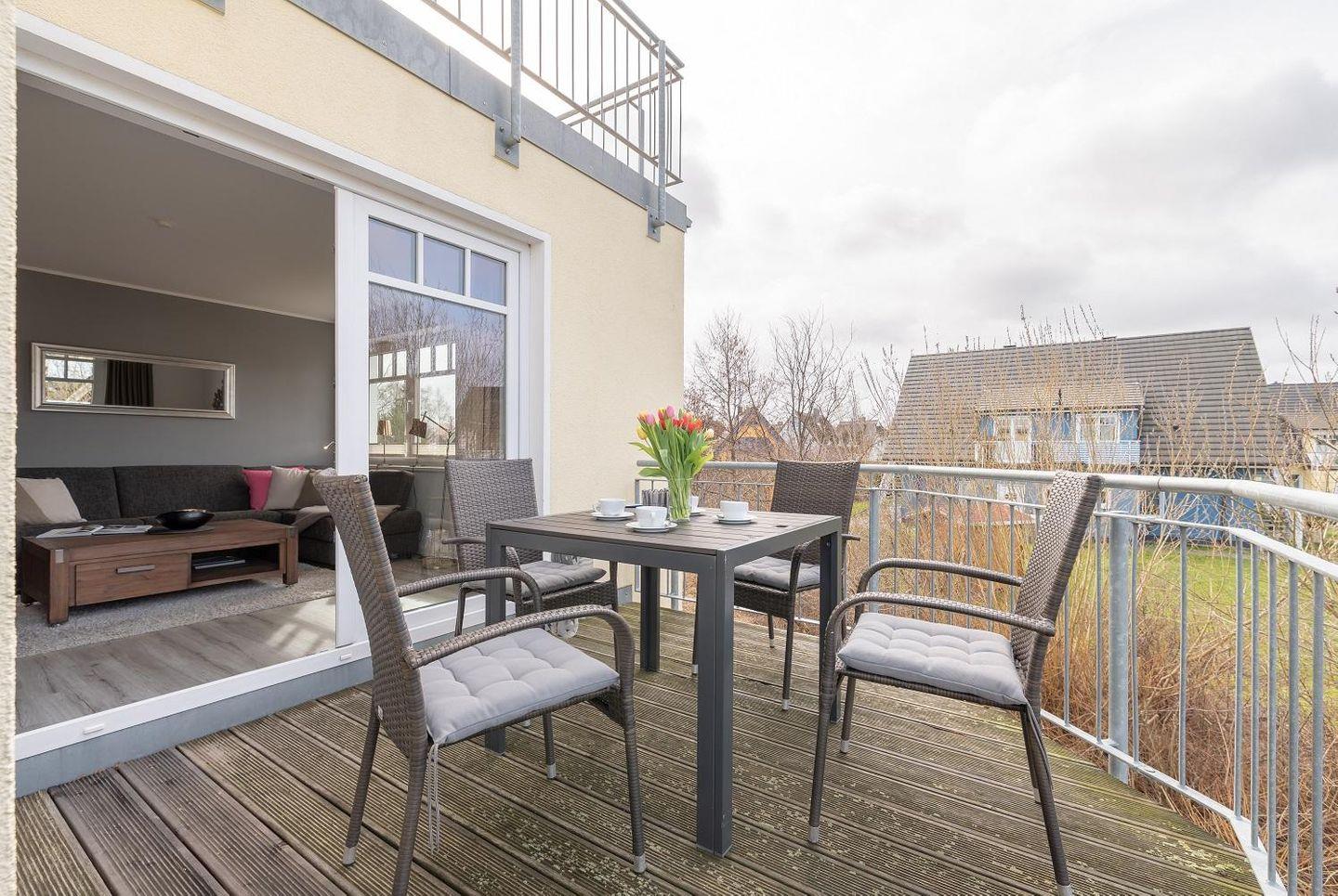 Moderne Ferienwohnung Strandlounge in Börgerende, nur 300m vom Strand, mit Balkon, WLAN und kostenfreiem Parkplatz.