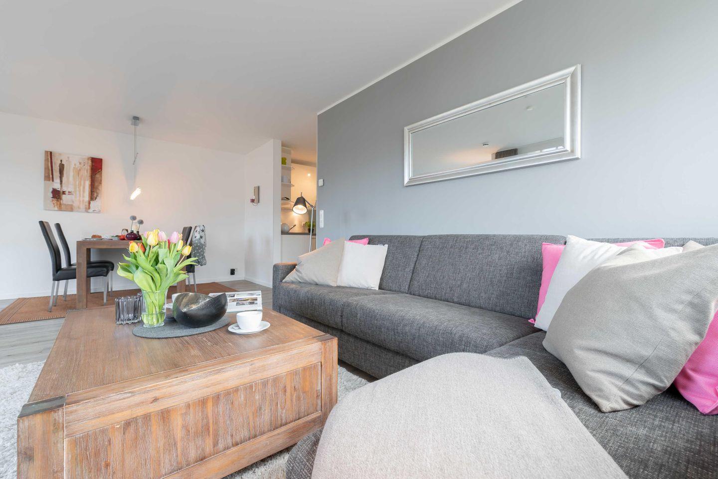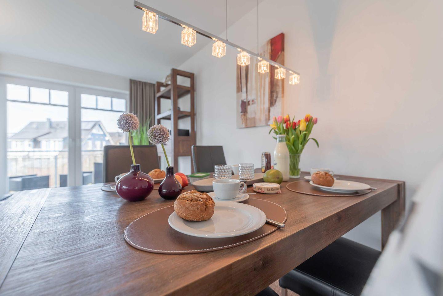 Der große SÜD-WEST-BALKON lädt zum Verweilen ein. Besonders in den Nachmittags- und Abendstunden, wenn die Sonne langsam untergeht. Die Strandlounge ist mit Liebe zum Detail für Sie eingerichtet worden. Lassen Sie sich überraschen und begeistern!