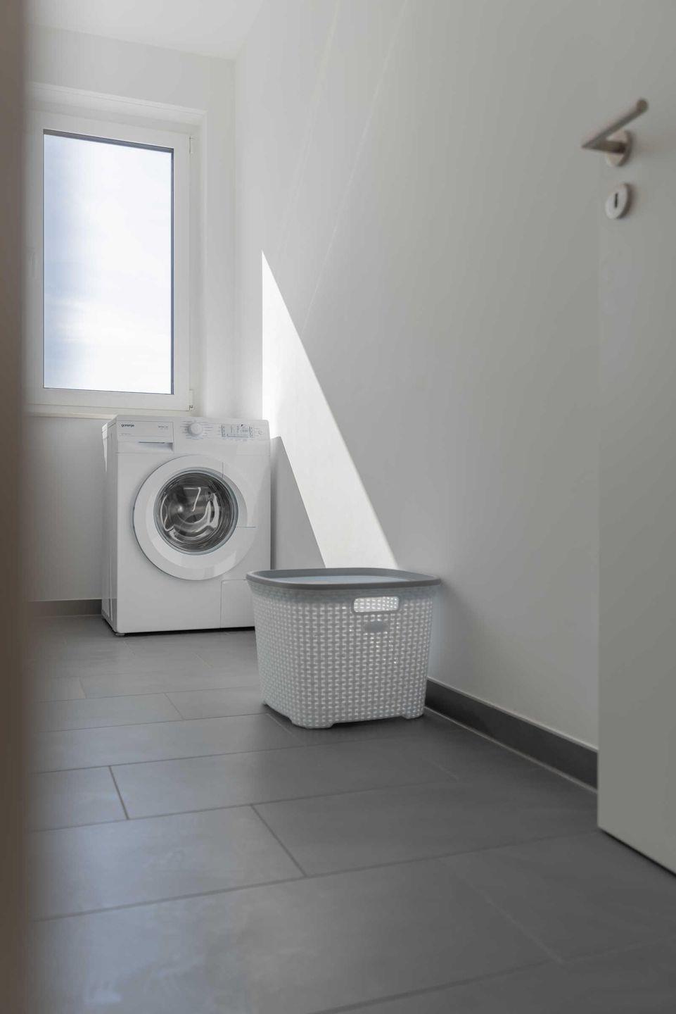 Im integrierten Abstellraum der Freienwohnung befindet sich eine Waschmaschine,