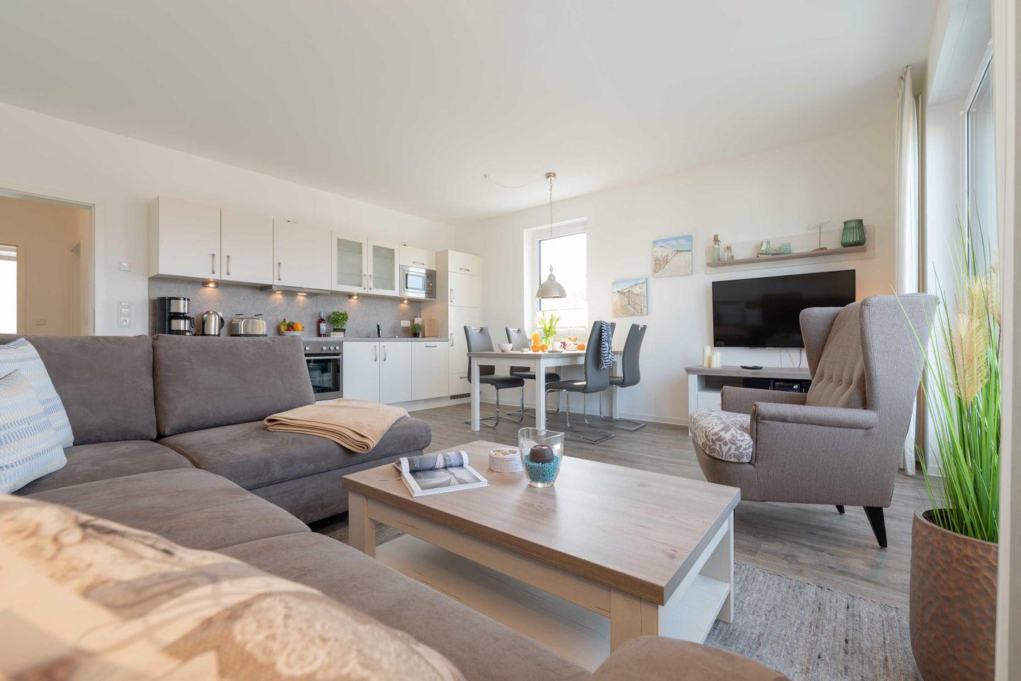 Das Apartment ist im maritimen Stil eingerichtet und verfügt über einen
