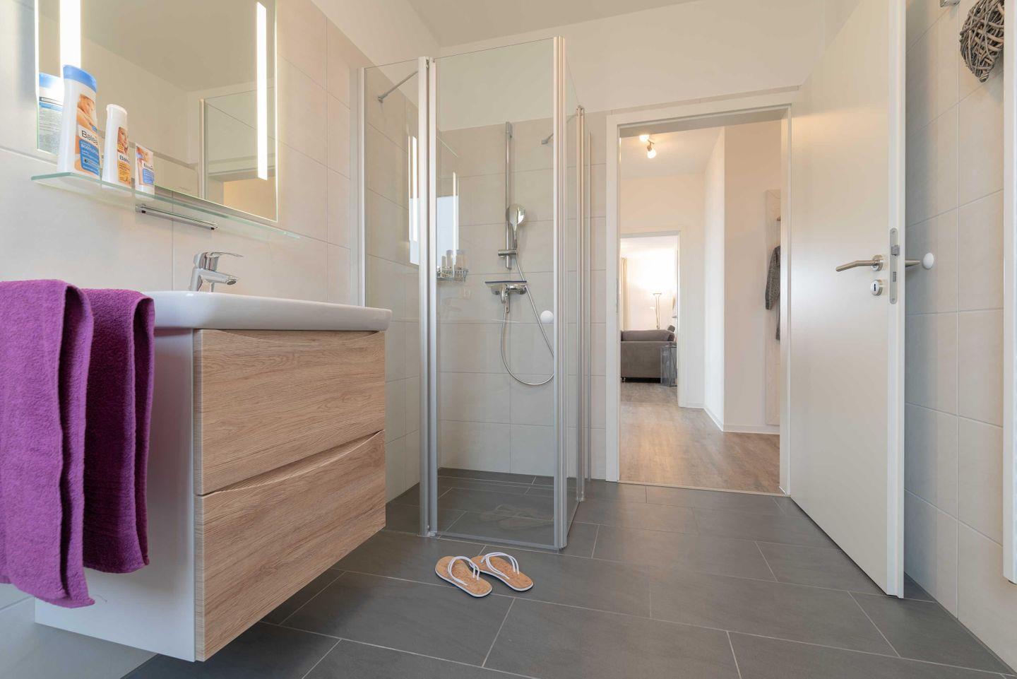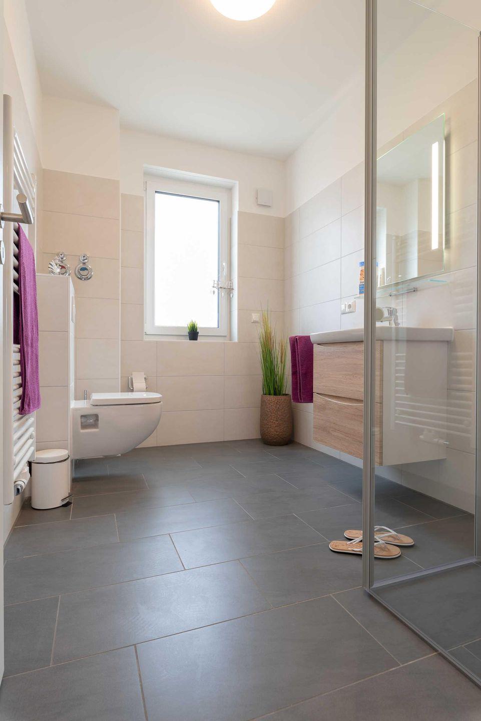 besticht mit ebenerdiger Dusche und eigenem Fenster. In den Schlafräumen sorgen