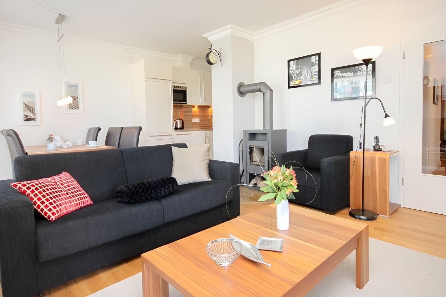 DVD-Player, einer Stereoanlage und einem Kaminofen (Kaminholz muss selbst