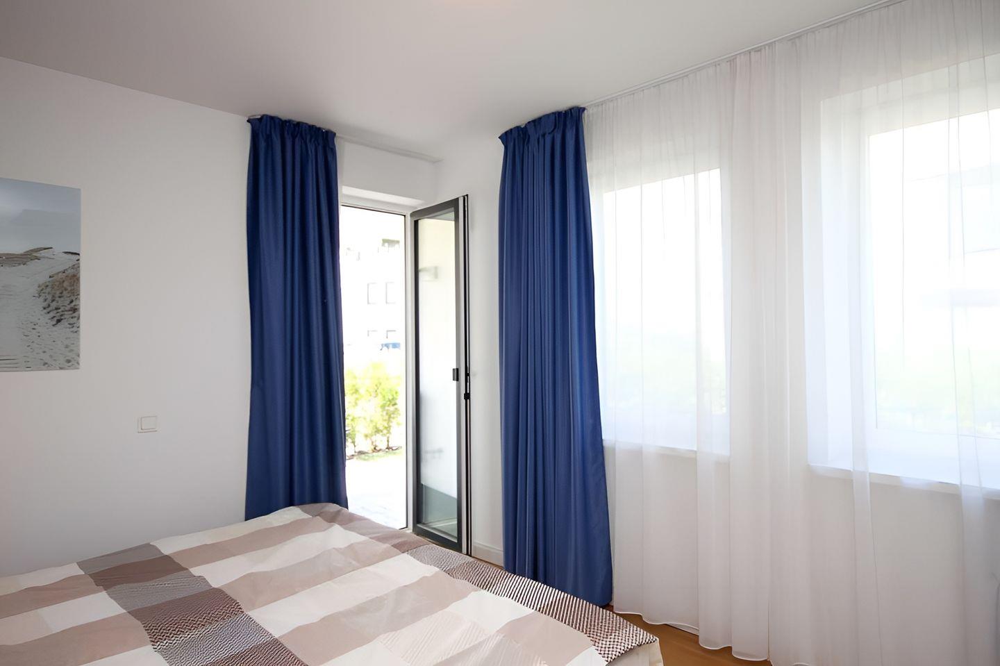 Vorhänge lassen sich auf Wunsch so zuziehen, dass nahezu kein Tageslicht