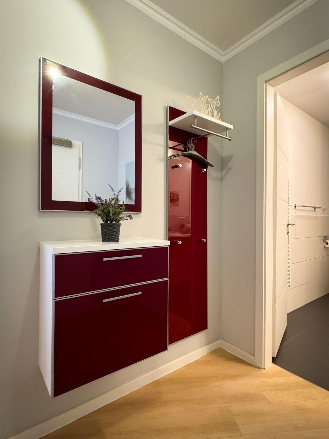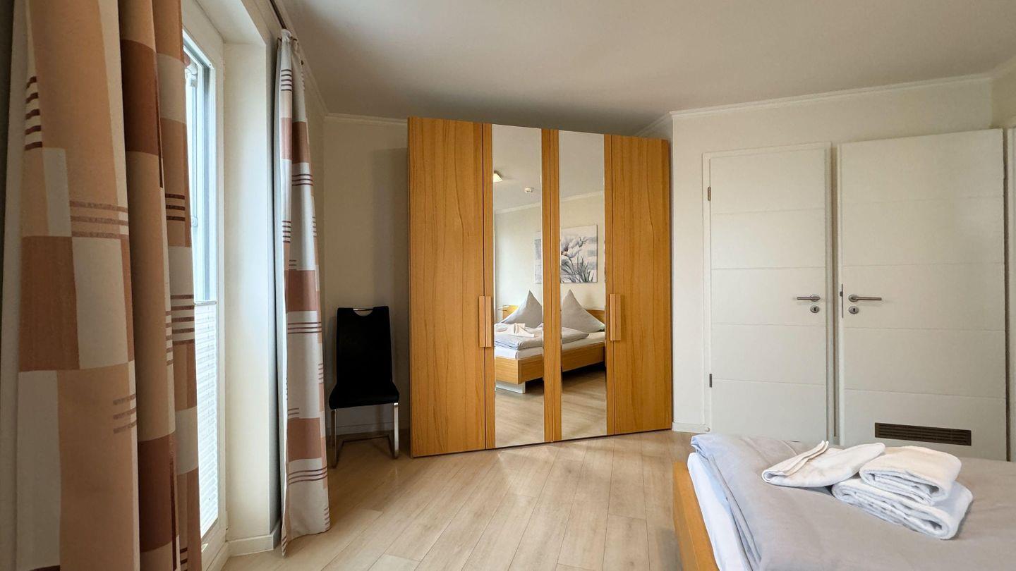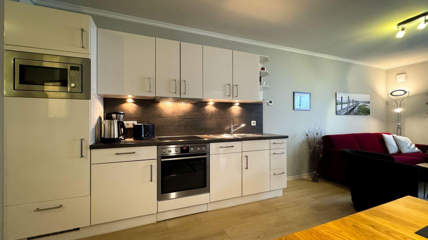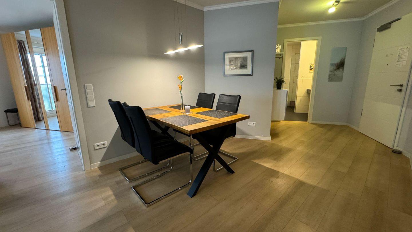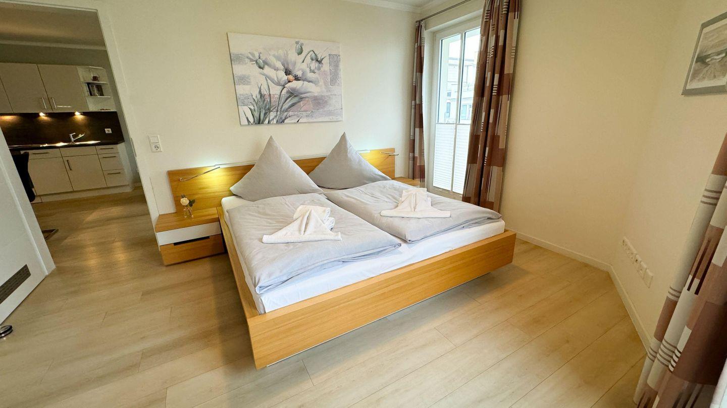 Der im Jahre 2023 neu möblierte große WOHN- UND ESSBEREICH bietet Ihnen ein bequemes Sofa mit Ottomanen, einen separaten Sessel sowie zwei kleine Beistelltische. Von hier blicken Sie direkt auf einen hyggeligen KAMINOFEN (Kaminholz wird nicht bereitgestellt). Die Couch kann schnell zum Schlafsofa für die dritte Person ausgeklappt werden. Außerdem ist ein Samsung Smart TV mit Blu-ray-/CD-/DVD-Player und integriertem Radio vorhanden. Zu Ihrer Unterhaltung finden Sie zudem eine Spielesammlung und einige Bücher. In der offenen KÜCHE finden Sie, unter anderem, ein Cerankochfeld, Backofen, Kühlschrank, Gefrierfach, Mikrowelle, Kaffeemaschine, Wasserkocher, Toaster sowie Handmixer und Pürierstab. An einem großen Holztisch mit Freischwingern aus Leder, können Sie Ihre zubereiteten Mahlzeiten genießen. Oder, bei gutem Wetter, auch auf dem Balkon. Das SCHLAFZIMMER ist mit hochwertigen Möbeln von HÜLSTA eingerichtet und besticht mit einem Doppelbett (180 x 200 cm/ getrennte Matratzen)) mit höhenverstellbarem Kopf- und Fußteil sowie einem geräumigen Kleiderschrank. Von hier aus können Sie ebenfalls den Balkon betreten und einen kleinen Blick auf die Ostsee erhaschen. Im eleganten Duschbad erwartet Sie eine bodengleiche Dusche mit Glaswand. Ein Handtuchtrockner, ein geräumiger Waschtisch mit großem Spiegel und ein Fön, gehören zur Badausstattung. Den möblierten BALKON dieser Wohnung können Sie entweder aus dem Wohnbereich oder auch aus dem Schlafzimmer betreten. Dieser ist nach Osten ausgerichtet und ideal für ein Frühstück bei Sonnenschein. Im ABSTELLRAUM finden Sie ausreichend Platz, um Ihre Koffer unterzubringen. Dort finden Sie auch Auflagen für die Balkonmöbel sowie ein Bügeleisen und Bügelbrett. Alle Räume der Unterkunft sind mit einer Fußbodenheizung ausgestattet worden. Ein PKW-STELLPLATZz steht Ihnen KOSTENFREI direkt am Objekt zur Verfügung. Außerdem erleichtert der im Gebäude installierte Aufzug den Transport der mitgebrachten Urlaubssachen in Ihr Domizil. In der Tiefgarage gibt es zudem eine Abstellmöglichkeit für Ihre FAHRRÄDER. Hier noch einige HINWEISE: Es handelt sich um eine Nichtraucherwohnung. HAUSTIERE sind NICHT erlaubt. Das kostenfreie WLAN in der Unterkunft ist ausschließlich für die Verwendung von Social Media und den Austausch von Bildern mit Familie und Freunden gedacht. Die Nutzung zum Streamen von Filmen ist nicht vorgesehen. Wäscheset, Kinderreisebett und Kinderhochstuhl können kostenpflichtig zugebucht werden. Eine Waschmaschine und ein Trockner stehen im separaten Hauswirtschaftsraum im Untergeschoss der Villa zu Ihrer Verfügung (gegen Gebühr/ Münzautomat). Sichern Sie sich einen der begehrten STRANDKÖRBE nur ein paar Meter entfernt von den rauschenden Wellen der Ostsee (Anfang Mai - Ende August) und buchen Sie jetzt zu besonderen Konditionen (12,00 € pro Tag oder 75,00 € pro Woche).