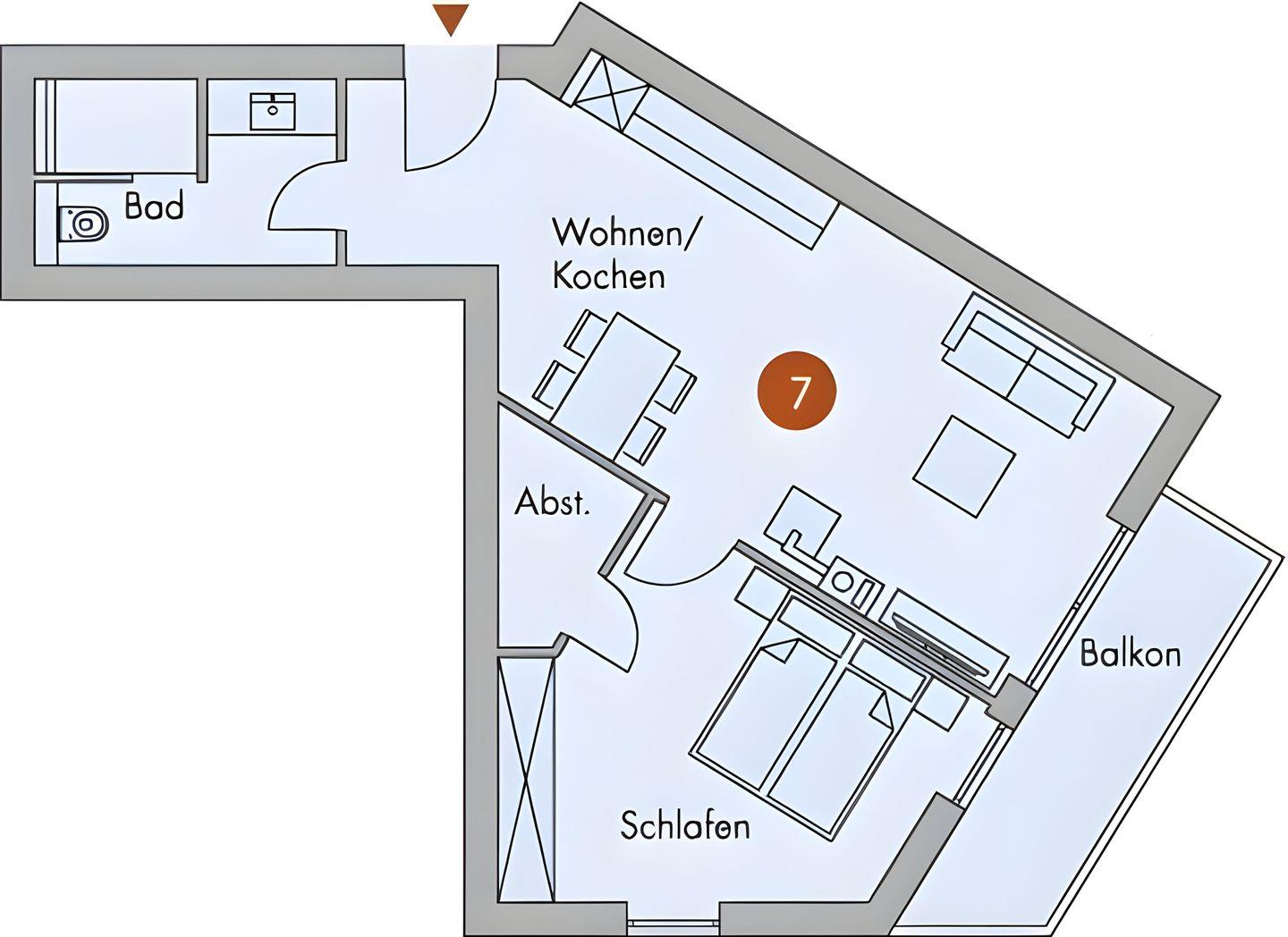 STRANDNAHE 2-RAUMWOHNUNG FÜR 3 PERSONEN MIT BALKON IM 1.OG.