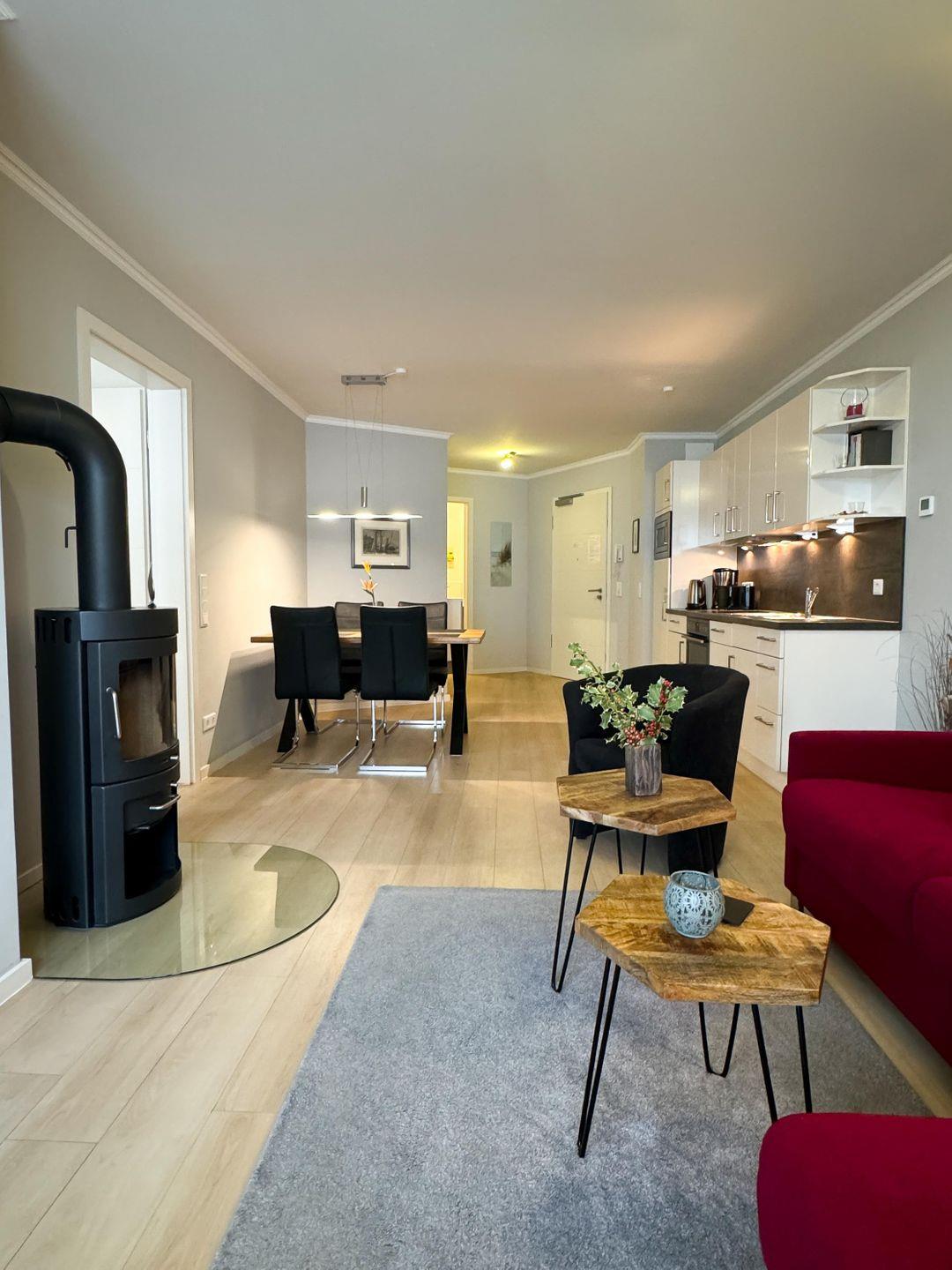 Komfortable Villa Strandvogt WE 07 mit Balkon, Kamin und eingeschränktem Meerblick, nur 100 m vom Strand entfernt.