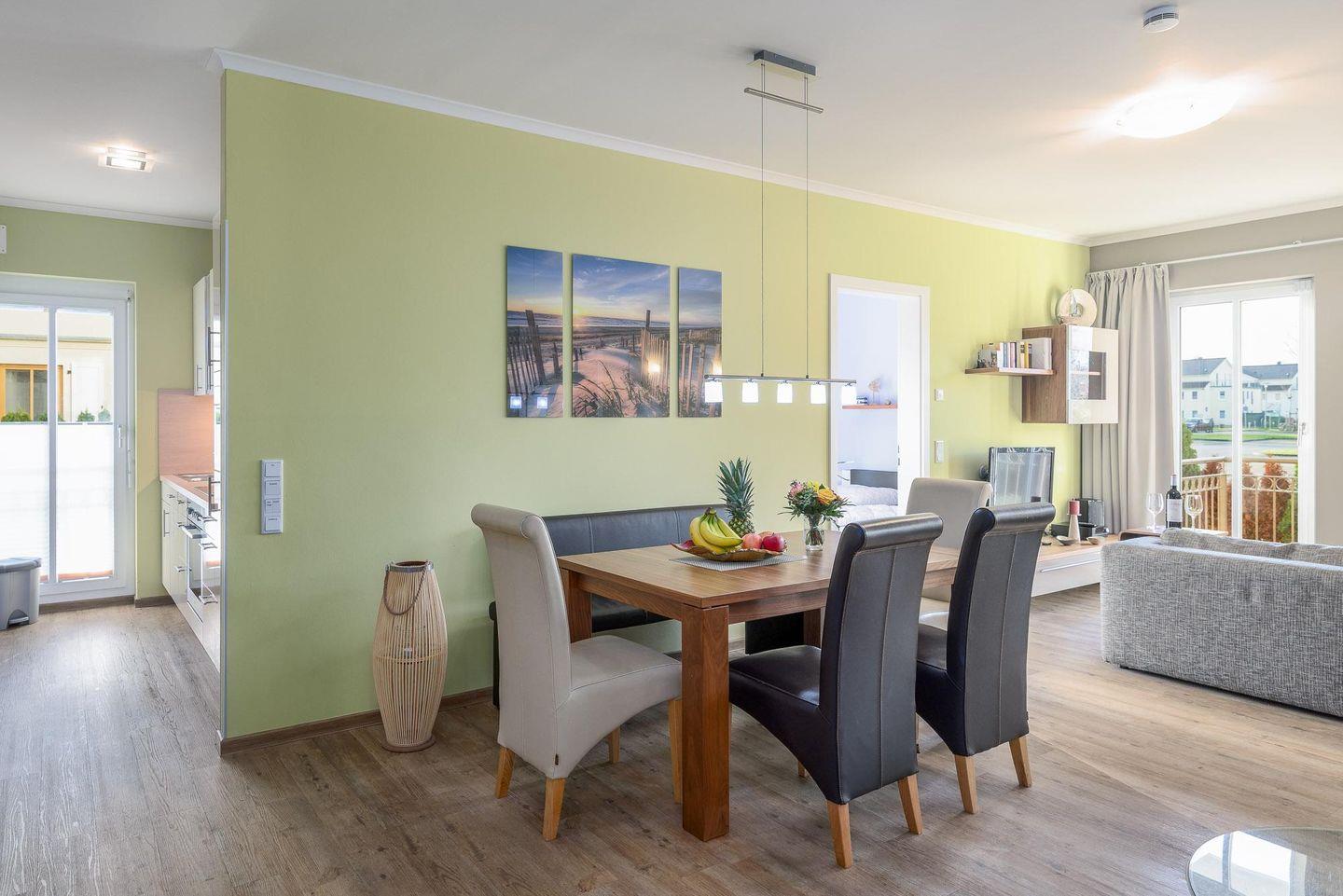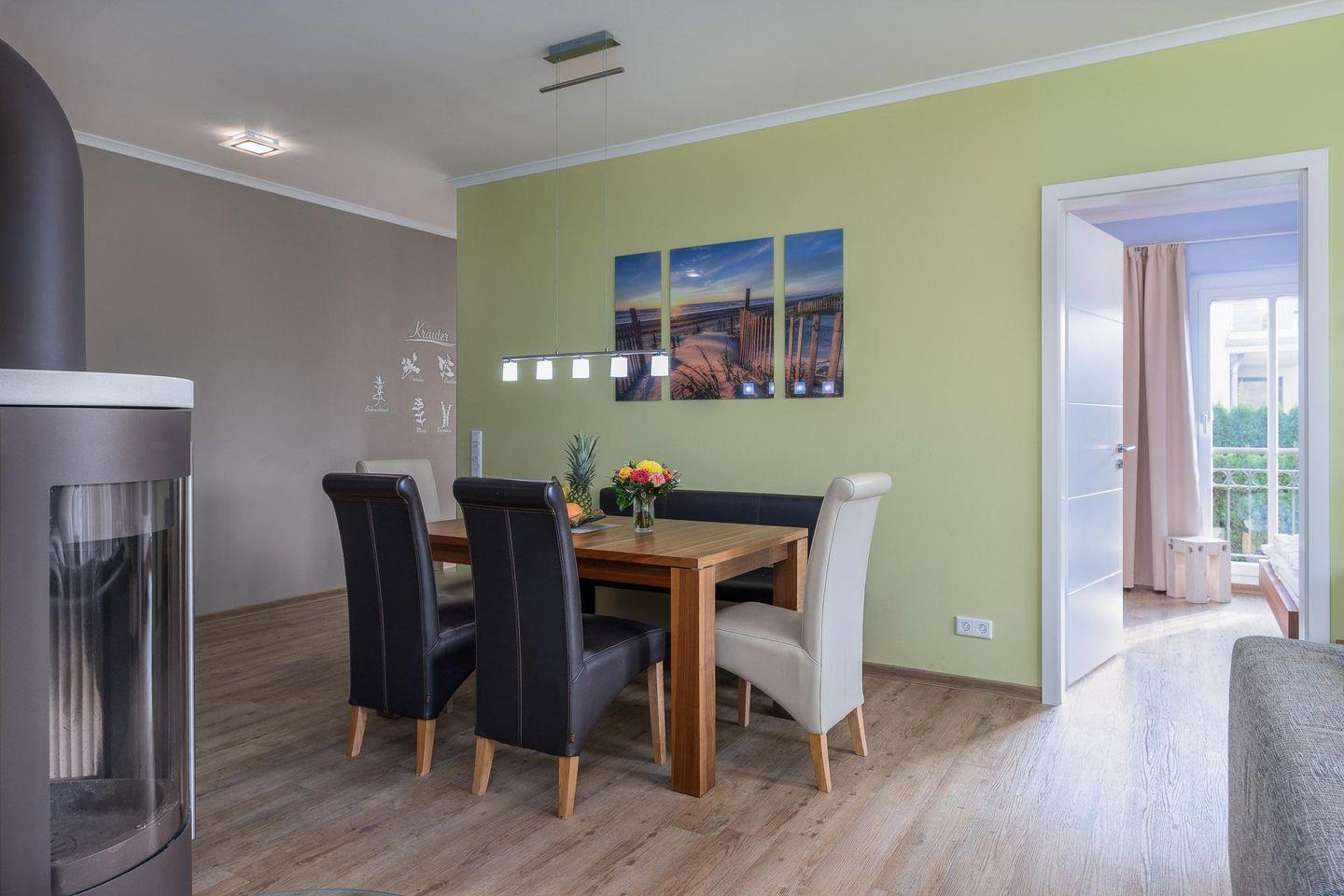 Raum zum gemeinsamen Essen und Spielen für bis zu sieben Personen. Wohnraum aus