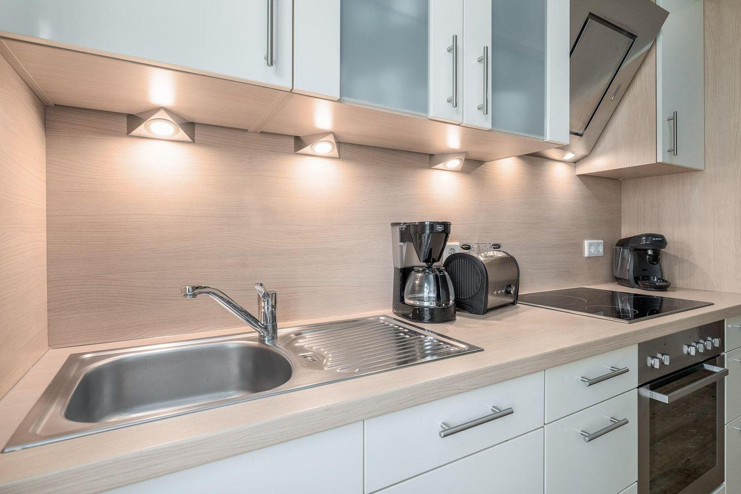 Geschirrspüler, Backofen, Ceran-Kochfeld, Mikrowelle, Kaffeemaschine,