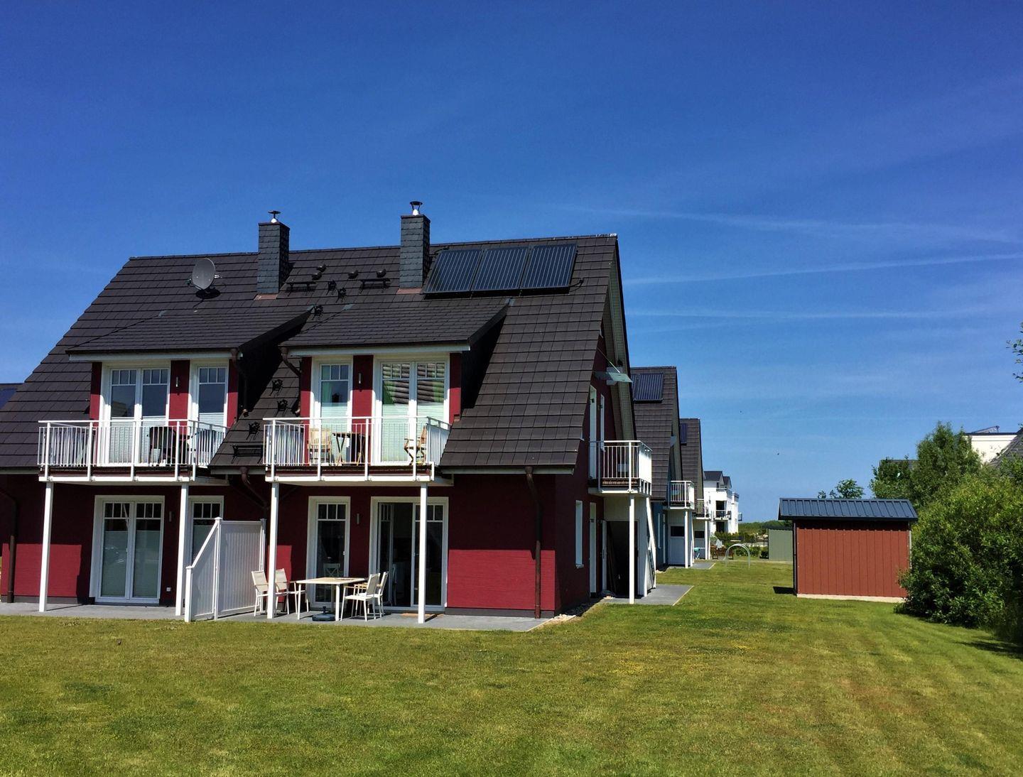 Apartment „Windflüchter“ in einem markanten weinroten Haus (2013 erbaut).