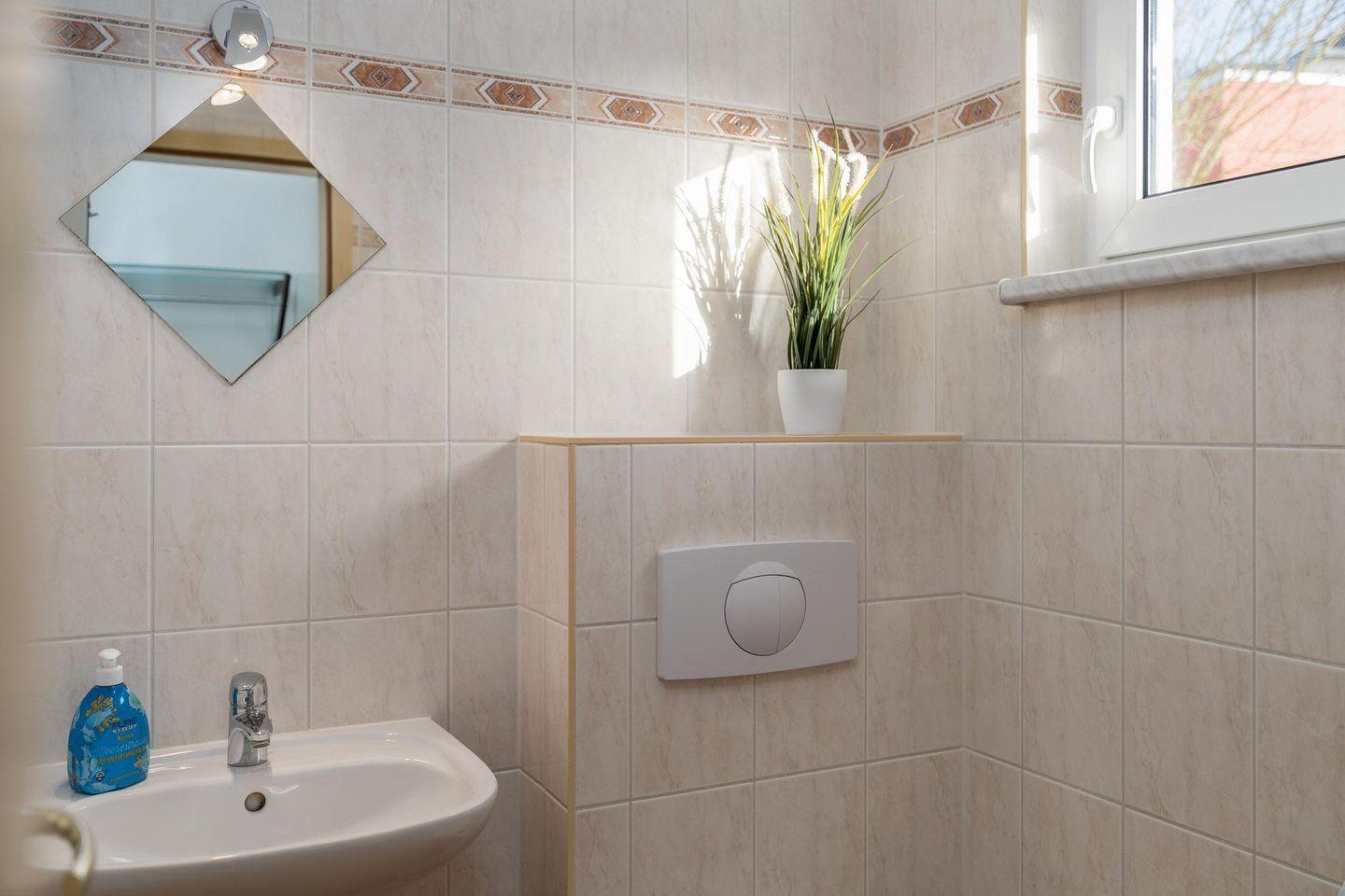 Eine moderne Heizungsanlage mit kombinierter Fußbodenheizung in Wohnzimmer, Küche, Badezimmer und Gäste-WC lädt zum ganzjährigen Besuch ein. Die Wäschespinne im Garten und ein Staubsauger in der Unterkunft erleichtern längere Aufenthalte.