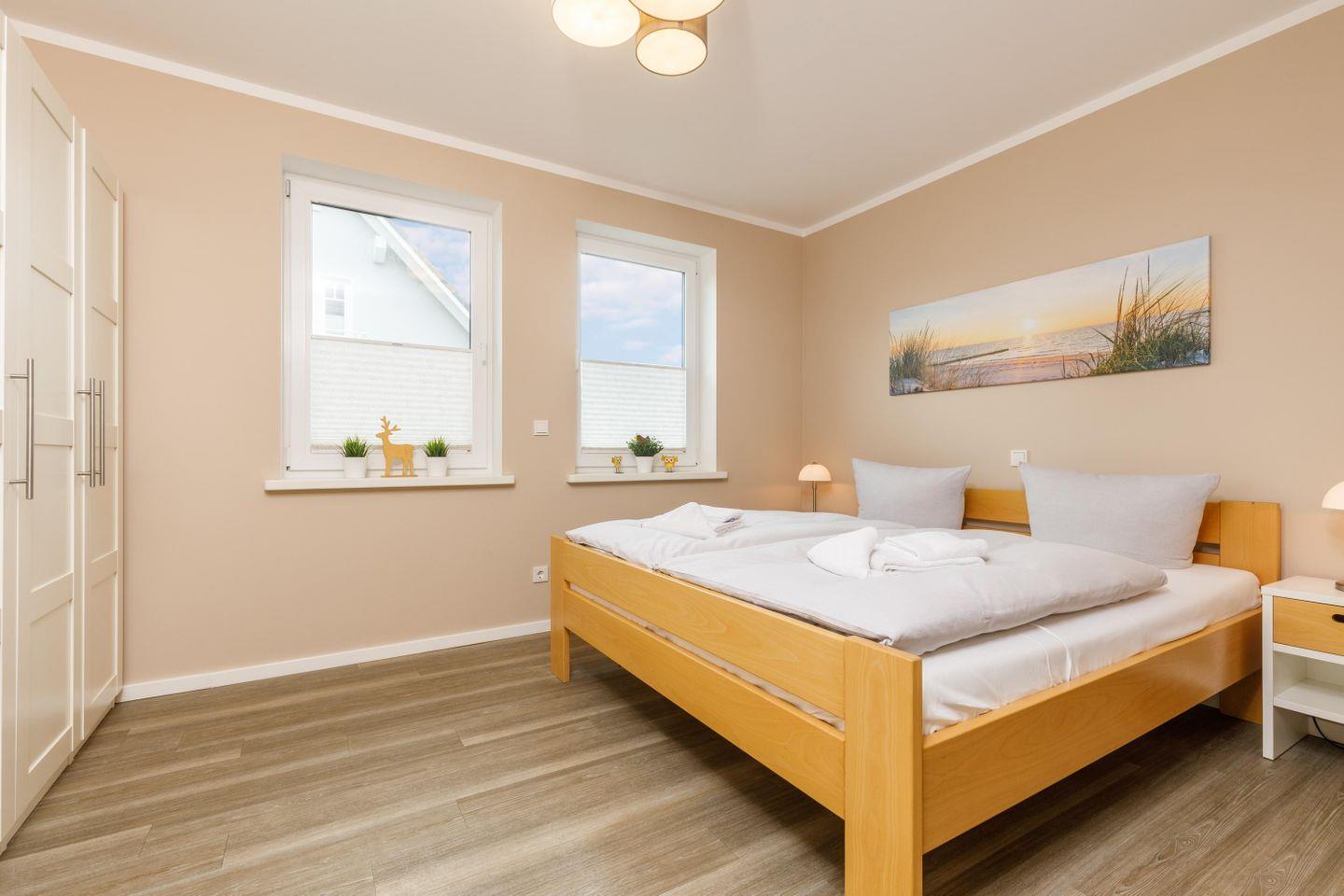 Das sonnendurchflutete Schlafzimmer empfängt Sie mit einem Kingsize-Bett und