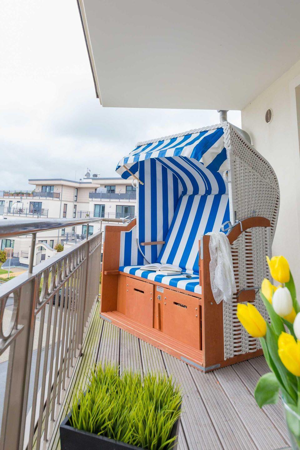 Der herrliche Balkon in Nord-Westausrichtung mit Blick auf die Ostsee ist mit