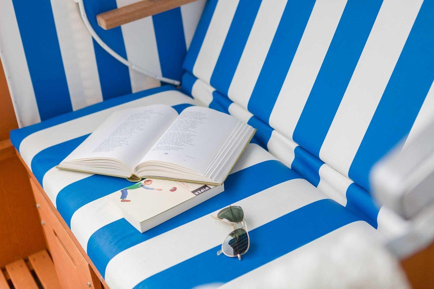 einer kleinen Rattan-Sitzecke sowie einem Strandkorb ausgestattet. Bei