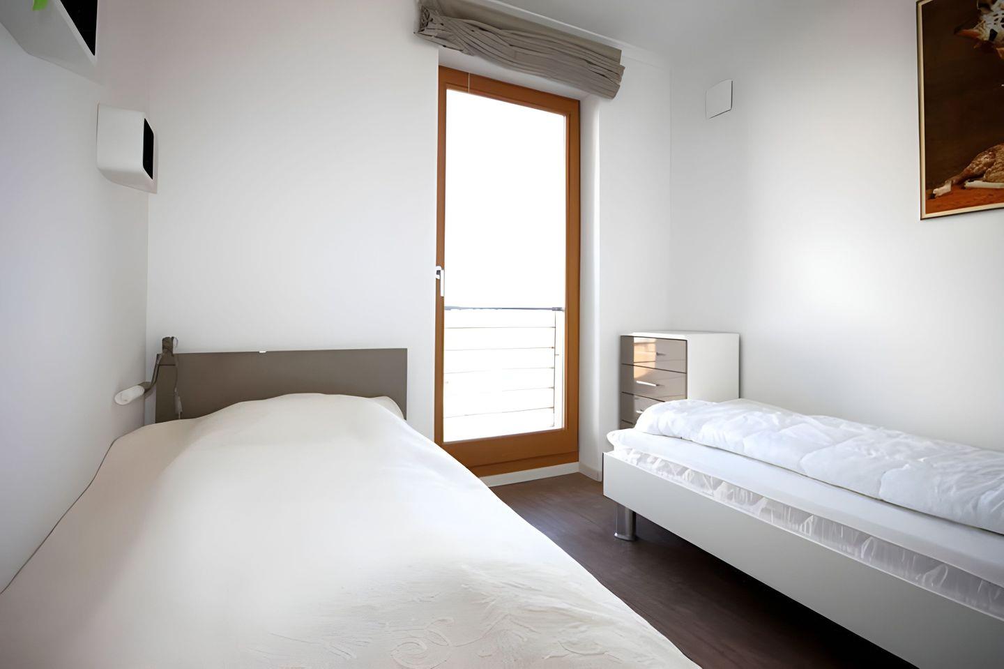 Das ERSTE SCHLAFZIMMER ist mit einem Doppelbett sowie einem Kleiderschrank ausgestattet. Im ZWEITEN SCHLAFZIMMER befinden sich zwei Einzelbetten. Das großzügige, elegante BAD besticht mit einer bodengleichen Dusche. Zu der Ferienwohnung gehört ein KOSTENFREIER AUSSENSTELLPLATZ (ca. 30 m vom Objekt entfernt). Am Eingang zur Villa befinden sich zudem FAHRRADSTÄNDER. Der im Gebäude installierte Aufzug erleichtert den Transport der mitgebrachten Koffer. In der gesamten Ferienwohnung wurde eine Fußbodenheizung eingebaut. Diese sorgt auch im Winter für einen gut temparierten Aufenthalt.