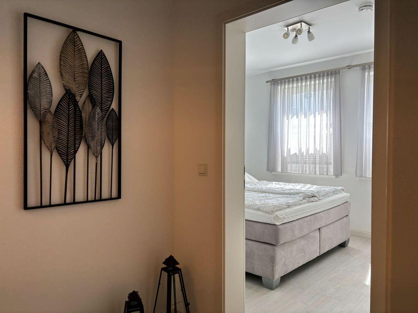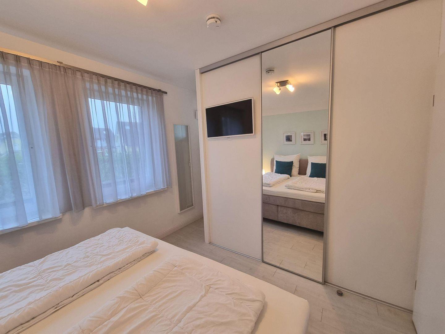 Im Schlafzimmer empfangen Sie ein luxuriöses Boxspring-Bett (1,80 x 2,00 m), ein