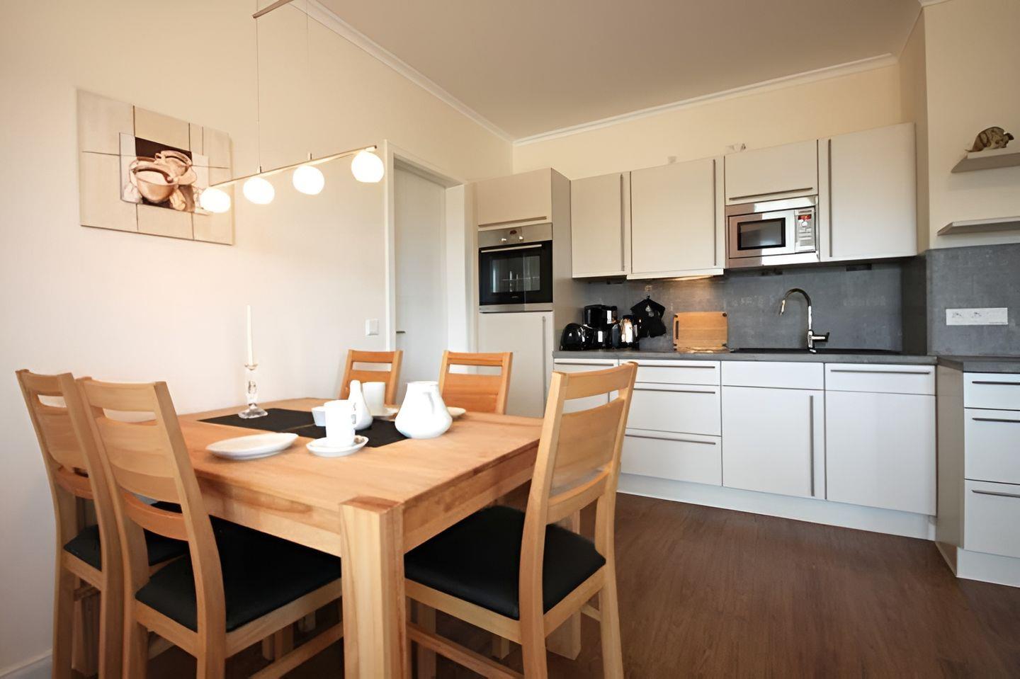 Die geschmackvoll eingerichtete Wohnung mit Vollholzmöbeln befindet sich im ersten Obergeschoss der Residenz Seestern und bietet Platz für fünf Personen. Die Wohnung ist mit einer Fußbodenheizung ausgestattet. Sie können jeden Raum in der Wohnung abdunkeln.