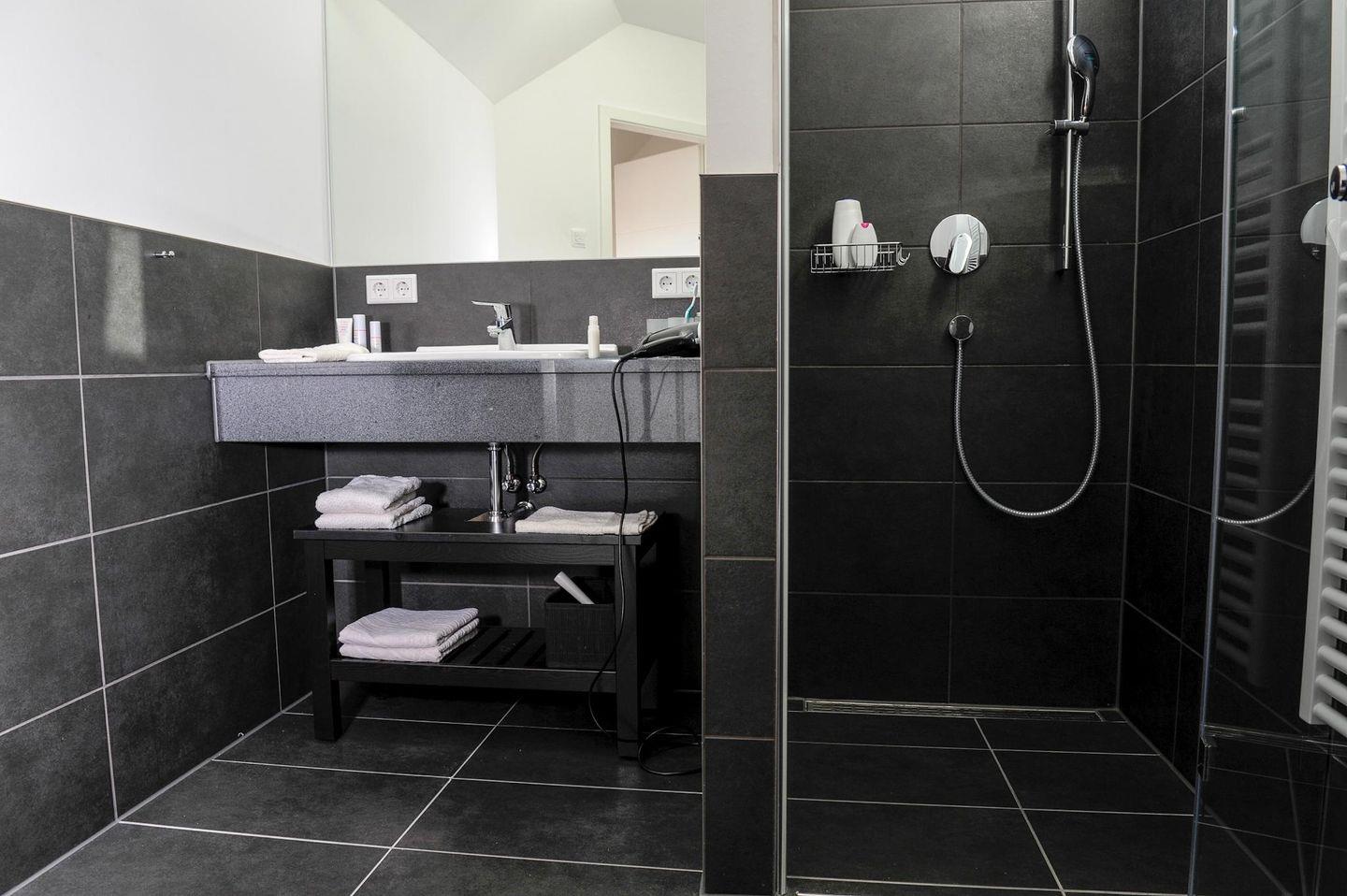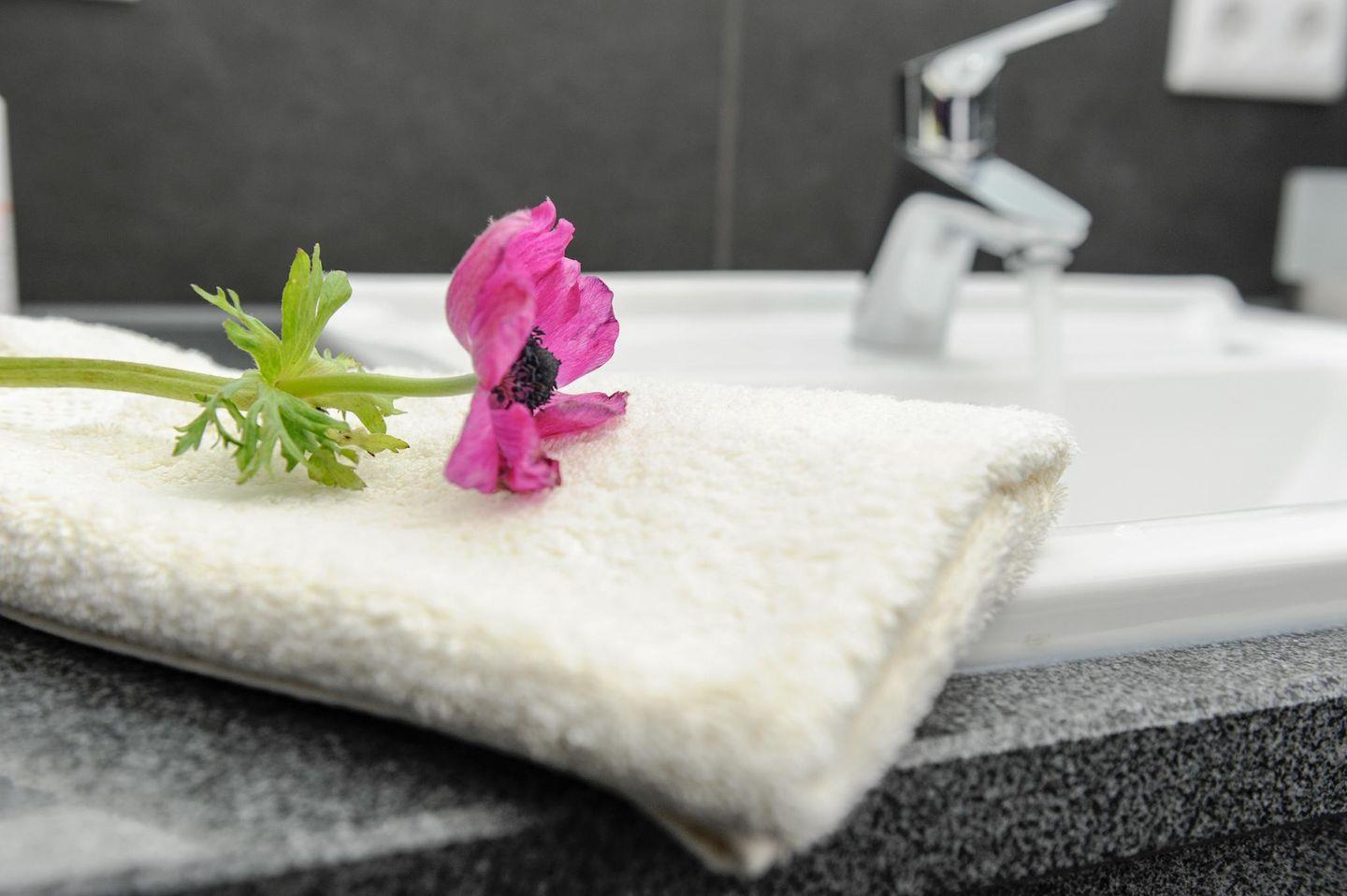 2 Bäder mit bodengleicher Dusche, beheizbarem Handtuchhalter und Föhn, Kinderhocker und Kindereinsatz für WC