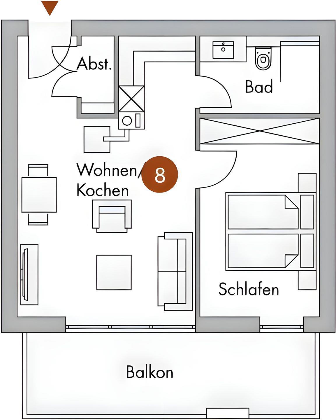 STRANDNAHE KOMFORTABLE 2-RAUMWOHNUNG FÜR 3 PERSONEN MIT GROSSEM BALKON IM 1. OG.