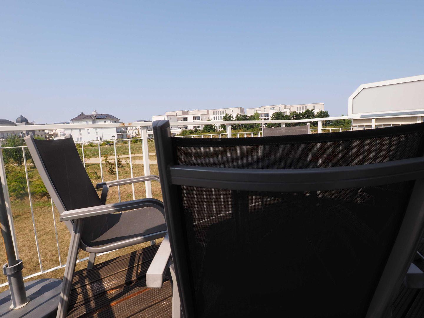 Zwei Balkone laden zum Entspannen an der frischen Luft ein: Einer ist direkt vom Wohnbereich aus zugänglich, der andere grenzt an das Schlafzimmer auf der unteren Wohnebene – perfekt für ein Frühstück in der Sonne oder ein Glas Wein am Abend.