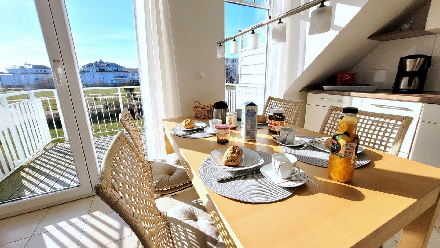 Strandnahe Maisonette-Wohnung mit Kamin, 2 Balkonen und Panoramablick für erholsame Tage an der Ostsee.