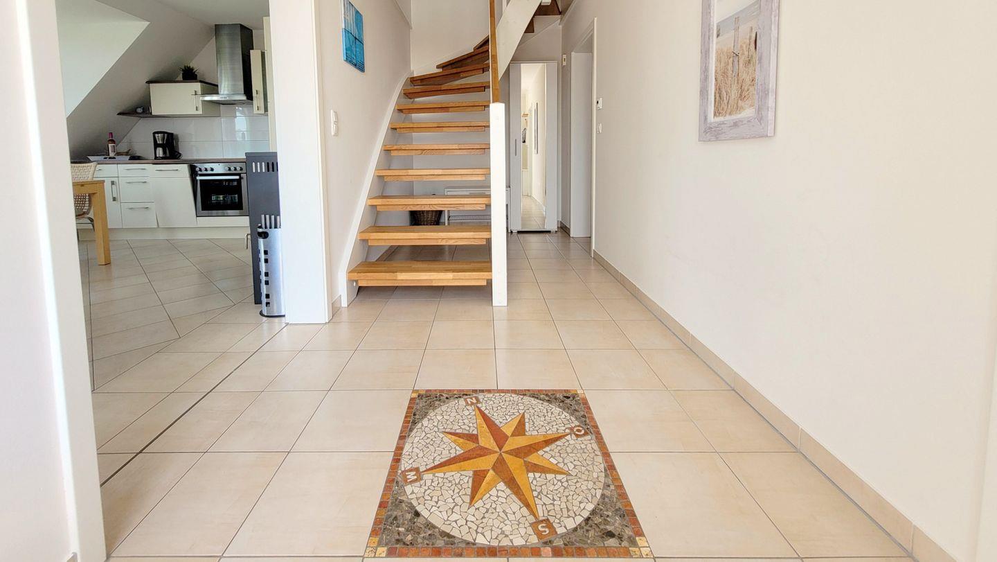 Die großzügige 3-Zimmer Maisonette mit frischem Flair bietet auf zwei Wohnebenen einen offenen Wohn- und Essbereich, 2 Schlaf- und 1 Badezimmer, eine Frühstücksterrasse mit Morgensonne und einen sonnigen S/W-Balkon mit wunderschönem Blick auf den hauseigenen Garten und den Park von Börgerende. Das modern und mit Liebe zum Detail eingerichtete Feriendomizil ist vollständig ausgestattet und stellt Ihnen während des Aufenthaltes unter anderem kostenloses WLAN, einen Flat-TV mit Blu-ray- / DVD-Player und kleiner Mediathek, sowie eine Musikanlage mit kabelloser Wiedergabe vom eigenen Mobiltelefon / Tablet zur Verfügung (Internet-Radio, Podcasts, Spotify, e.t.c.). Für die Zubereitung kulinarischer Genüsse steht eine geräumige Einbauküche mit Kühlschrank inkl. Gefrierfach, Backofen, Mikrowelle, Ceran-Kochfeld, Dunstabzugshaube, Kaffeemaschine, Wasserkocher, Toaster und Geschirrspüler bereit. Die Fußbodenheizung sorgt für wohlige Wärme in allen Räumen und ein knisternder Kaminofen verbreitet an entspannten Abenden besondere Gemütlichkeit. Direkt vor dem Haus stehen Ihnen ein eigener PKW-Stellplatz als auch Ständer zum Anschließen der Fahrräder zur Verfügung.