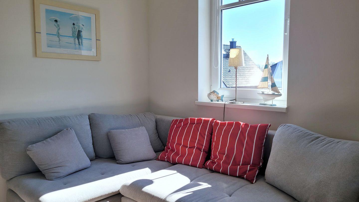 Diese charmante Ferienwohnung im Obergeschoss bietet auf 65 m² ausreichend Platz für 5 Personen. Sie verfügt über 2 Schlafzimmer mit Doppelbetten, eine gut ausgestattete Küche und einen gemütlichen Wohnbereich mit Kaminofen und Schlafsofa. Die Balkone sind ideal zum Entspannen an schönen Tagen. Haustiere sind nicht erlaubt. Der Strand ist nur 150 Meter entfernt, ein kostenloser PKW-Stellplatz ist vorhanden.