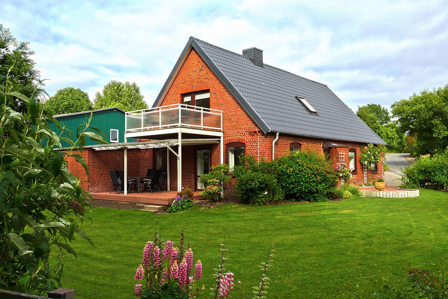 Moderne Ferienwohnung Waterkant mit überdachter Terrasse und Spielscheune nahe Wittensee-Strand.