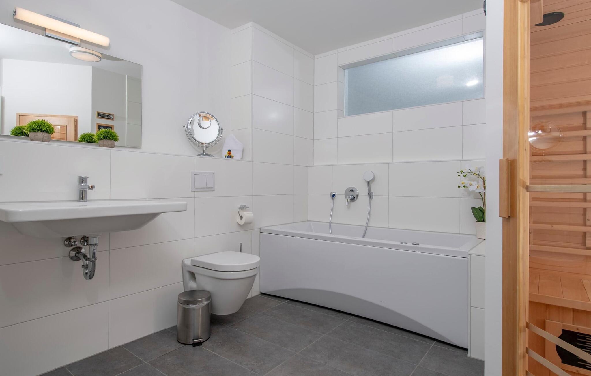 Fußbodenheizung, Whirlpool-Badewanne und Sauna versprechen Komfort zu jeder Jahreszeit.