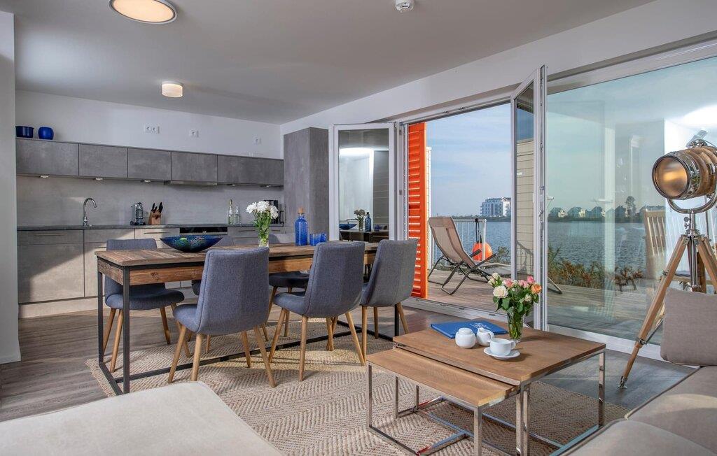 Traumhafte Aussichten eröffnen sich aus dem Wohnbereich und auf der angrenzenden Terrasse mit Blick über die Marina. Hafenkino sorgt hier für Unterhaltung während eines geselligen Grillabends oder romantischen Candle-Light-Dinners.