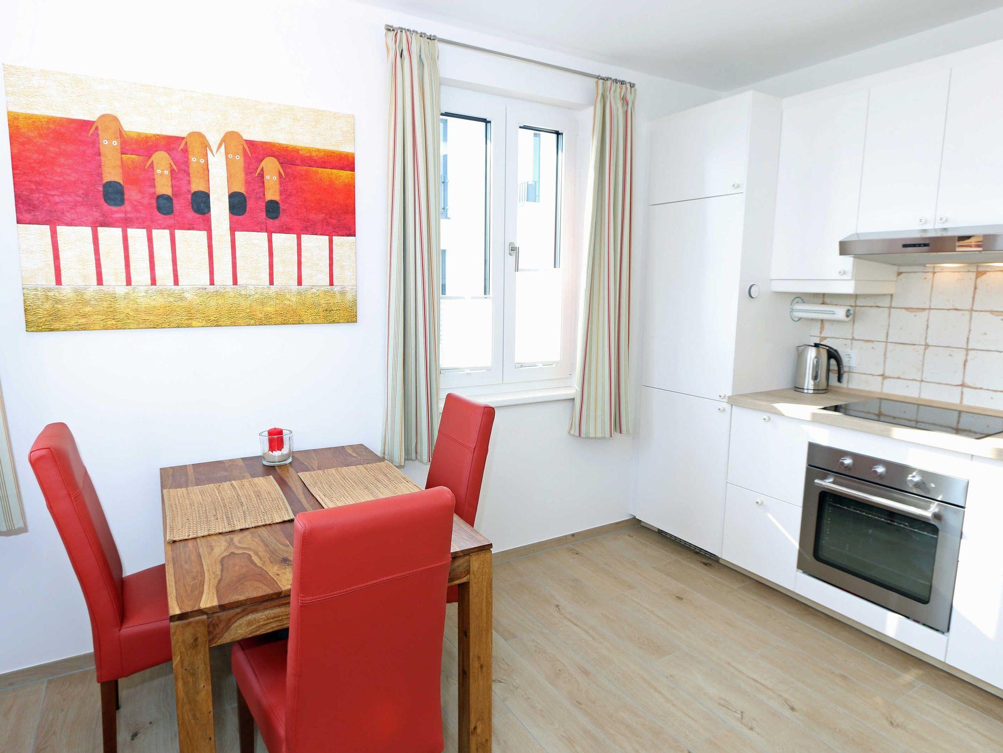 Die hochwertig eingerichtete Wohnung 14 in der Villa Düne Solea liegt in der ersten Reihe im Ostseebad Baabe. Die Nichtraucherwohnung befindet sich in der 2. Etage und ist bequem mit dem Fahrstuhl zu erreichen. Mit Ihren ca. 53 qm Wohnfläche bietet sie ausreichend Platz für 2 bis max. 3 Personen + 1 Kleinkind bis 3 Jahre im Kinderreisebett. Die gesamte Wohnung wurde in einer angenehmen Holzoptik gefliest und wurde mit einer Fußbodenheizung versehen. Der Wohnbereich ist mit einer gemütlichen Eckcouch (Schlafgelegenheit für die 3. Person 1,20m x 2,00m) und Echtholzmöbeln aus Palisander, einem Couchtisch, einem Sideboard, einem großen Smart-TV, einer Mini-Stereo-Anlage mit USB-Anschluss ausgestattet. Auf einen Internetzugang (WLAN) brauchen Sie im Urlaub nicht zu verzichten. Dieser ist für Sie inklusive. Bücherregale und ein Schreibtisch runden das Bild mit Gesellschaftsspielen ab und sorgen für eine gemütliche Atmosphäre. Der direkt angrenzende Küchenbereich ist sehr vielseitig und modern ausgestattet. Hier ist alles zu finden, damit das Kochen im Urlaub Spaß macht. Ein Kühlschrank mit Gefrierschrank, ein Induktionsherd, eine Dunstabzugshaube, eine Spülmaschine, ein Toaster, ein Wasserkocher, eine Kaffeemaschine mit Thermoskanne, Senseo Pad-Maschine, ein Rührgerät sowie weitere kleine Küchenhelfer. Der große Holzesstisch mit den bequemen Lederstühlen lädt nicht nur für gemeinsame Mahlzeiten ein, sondern auch um den Blick aufs Meer zu genießen. Von hier gelangen Sie auf den überdachten Balkon (Südost). Mit einer bequemen Outdoorcouch, passendem Esstisch sowie einer Liege und einem Sonnenschirm können Sie den freien Blick auf die Ostsee genießen. Das gemütliche Schlafzimmer ist mit einem Doppelbett (1,80m x 2.00m), bequemen Matratzen, verstellbare Lattenroste, Nachttischablagen, ein Ganzkörperspiegel, eine Kleiderablage und einem geräumigen Kleiderschrank ausgestattet. Abgerundet wird das Schlafzimmer durch einen Smart-TV sowie Verdunklungs-Vorhängen für die bodentiefen Fenster. Das Aufstellen eines Kinderreisebettes ist hier leider nicht möglich, nur im Wohnbereich. Vom Eingangsbereich aus, der mit einer großzügigen Garderobe ausgestattet ist, kann eine betretbare Kammer für Koffer genutzt werden, die u. a. mit einem Wäscheständer, einem Staubsauger, Reinigungsutensilien sowie Bügeleisen und Tischbügelbrett ausgestattet ist. Direkt daneben ? nicht unweit von dem hübsch gestalteten Bad mit ebenerdiger Regen-Dusche, Fön, WC und Waschtisch ? befindet sich eine Sauna. So kann ein Wellnesstag oder -abend eingelegt werden, ohne die Wohnung verlassen oder die Gemeinschaftssauna im Haus nutzen zu müssen. Haustiere sind leider in der Wohnung nicht erlaubt. Ihre mitgebrachten Fahrräder können Sie im eigenen zur Wohnung gehörenden Keller (Nr.14/Solea) einschließen. Im Keller des Hauses haben Sie die Möglichkeit eine Waschmaschine/Trockner gegen Gebühr zu nutzen. Ein eigener PKW-Stellplatz (Nr.14) befindet sich direkt am Haus. Der am Parkplatz angrenzende Baum harzt beizeiten aus. Es wird empfohlen das Auto mit der in der Abstellkammer ausgelegten Abdeckung zu schützen, bis das Problem behoben ist. Die Erstausstattung eines Wäschepaketes (komplette Bettwäsche, 1 Duschhandtuch, 2 kleine Handtücher) können Sie bis 14 Tage vor Anreise gegen einen Aufpreis dazu buchen oder durch eigene ergänzen. Ab 2 gebuchten Paketen erhalten Sie einmalig 1 Geschirrhandtuch und 1 Duschvorleger dazu.