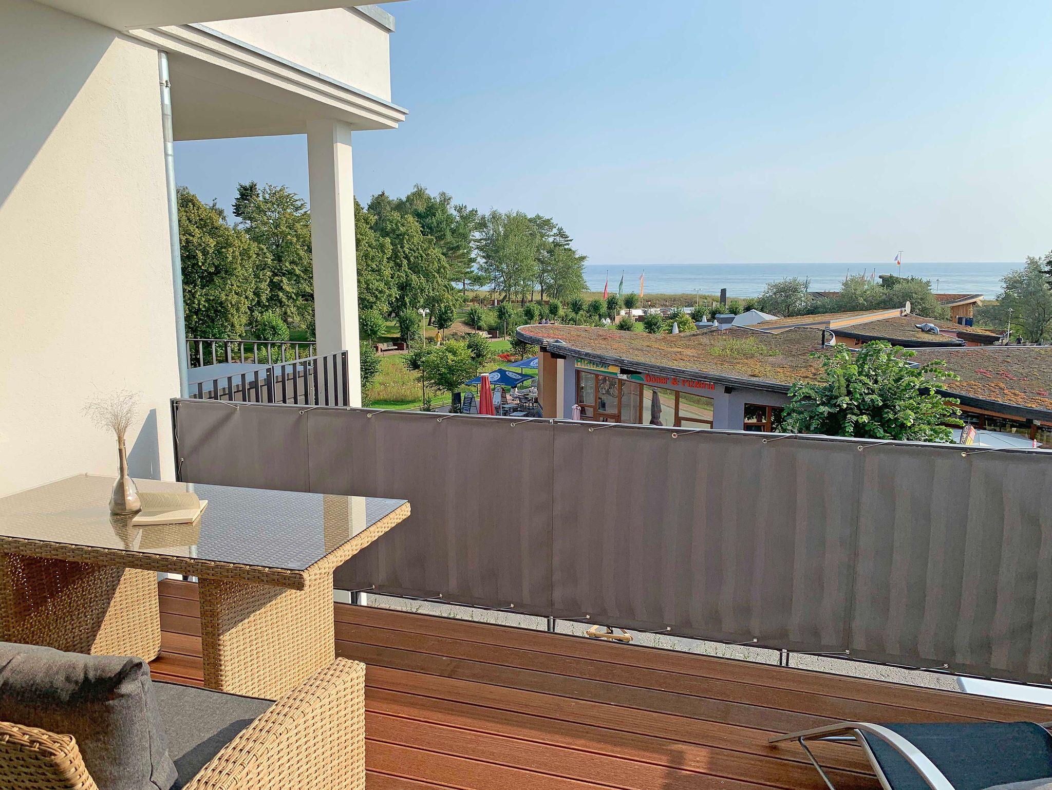 Die Villa Düne Wohnung 14 in Baabe bietet Meerblick, Balkon und Sauna nur 100 m vom feinen Ostseestrand entfernt.