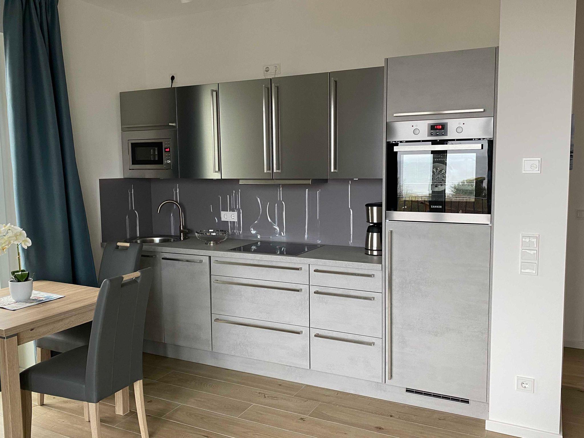 Bodentiefe Fenster, Fußbodenheizung, eine liebevolle Einrichtung und der Panoramablick zum Meer geben ein herrliches Ambiente. Die Wohnung ist mit allem ausgestattet was man braucht, inkl. Geschirrspülmaschine, Backofen und ebenerdiger Dusche.