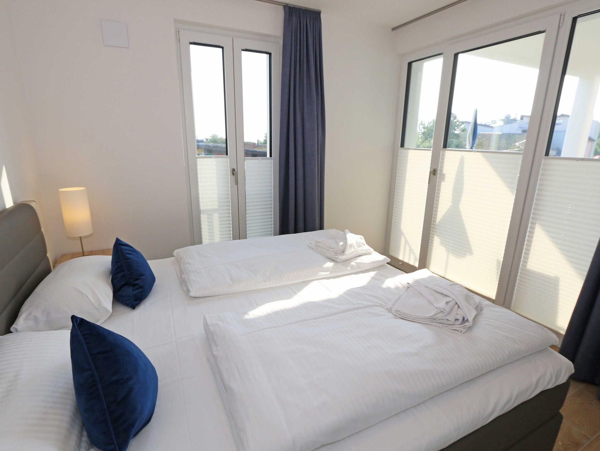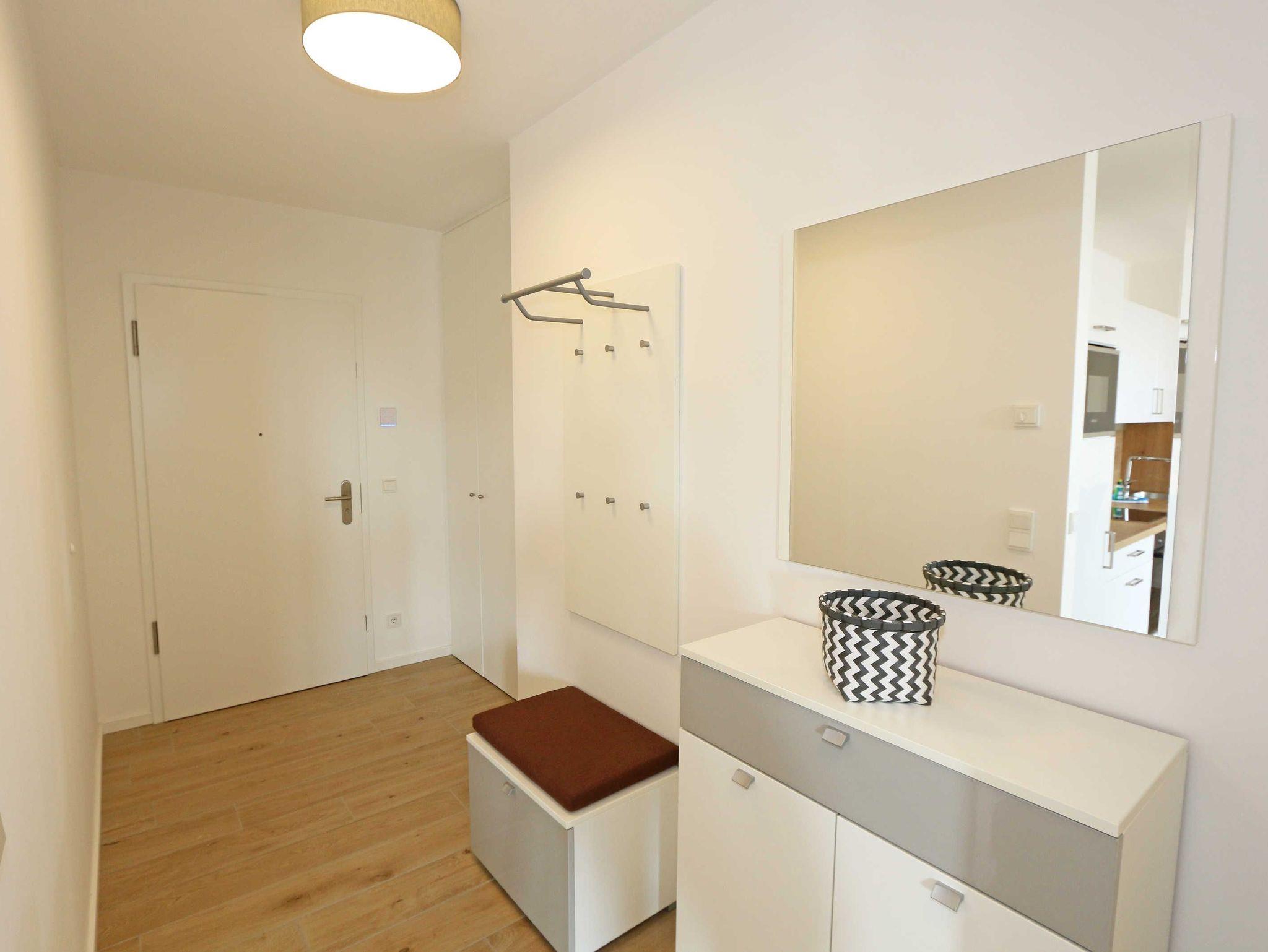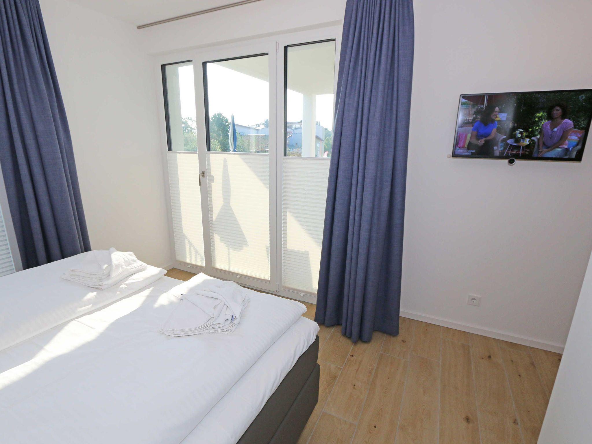 Die stilvoll und komfortabel eingerichtete Nichtraucherferienwohnung „Morgensonne“ befindet sich in der 1. Etage des Hauses. Es erwartet Sie eine 2 Raumwohnung mit einer Gesamtfläche von ca. 62 qm, welche Sie bequem mit dem Fahrstuhl erreichen können. Die Wohnung ist mit viel Liebe zum Detail ausgestattet und für maximal 2 Personen. Der offene Wohnbereich ist mit modernen Möbeln ausgestattet und verfügt über einen Couchtisch mit einem Sessel, Stehlampe, einem Sideboard und einer bequemen Ledercouch in modischen Farben. Für die Unterhaltung steht Ihnen ein Smart-TV von Loewe mit Blu-Ray-Player zur Verfügung ebenso wie eine kleine Auswahl an Urlaubslektüre und Musik-CD`s. Auch auf einen kostenlosen Internetanschluss (WLAN) müssen Sie nicht verzichten. Auf dem nach Osten zum Meer hin ausgerichteten und überdachten Balkon stehen Ihnen eine Sitzgarnitur mit Sonnenschirm für ein gemütliches Frühstück in der Morgensonne oder ein Glas Wein am Abend zur Verfügung. Dabei genießen Sie einen wundervollen Blick auf die Strandpromenade und die Ostsee. Die hochwertig eingerichtete Einbauküchenzeile besitzt Bosch-Hausgeräte mit Induktionskochfeld, Backofen, Kühlschrank mit Gefrierkombination, Mikrowelle, Toaster, Wasserkocher, Kombi Pad Kaffeemaschine mit Thermoskanne von Senseo, Eierkocher und verschiedenen Küchenutensilien. Der Essbereich schließt sich an und besteht aus einem Esstisch und gepolsterten Stühlen. Für einen erholsamen Schlaf steht Ihnen ein Boxspringbett (1,80m x 2,00m) zur Verfügung, mit durchgehendem Topper in Komforthöhe. Nachttischablagen mit Wandleuchten, ein großzügiger Kleiderschrank und ein Smart-TV ergänzen die Ausstattung im Schlafzimmer. Im Wohn ? und im Schlafzimmer gibt es außerdem einen Sichtschutz mit Faltjalousien, eine Verdunkelung mit Vorhängen sowie Insektenschutzgitter für einen erholsamen Schlaf. Von hier gelangen Sie auch auf Ihren Balkon. Im innenliegenden Bad finden Sie einen Waschtisch, ein Wandspiegel, eine ebenerdige Regendusche, ein WC, ein Fön, ein Handtuchtrockner und ein Kosmetikspiegel. Zur Entspannung nach dem Bad im Meer oder an kühlen Tag trägt die Infrarotsauna bei. Der Flurbereich ist mit einem Ganzkörperspiegel ausgestattet. Alle Räume haben geflieste Böden. Eine Fußbodenheizung sorgt an kühleren Tagen für wohlige Wärme. In einem separaten Abstellraum im Eingangsbereich befindet sich ein Staubsauger, ein Wäscheständer und div. Reinigungsutensilien. Zudem können Sie hier auch Ihre Koffer oder Badeutensilien aufbewahren. Ihre eigenen oder gemieteten Fahrräder können Sie in einen Fahrradständer im begrünten Außenbereich abstellen. In der Tiefgarage (Einfahrtshöhe 2,00m) steht Ihnen ein PKW-Abstellplatz (Nr. 15/Morgensonne) zur Verfügung. Im Untergeschoss des Gebäudes befindet sich ein weiterer Wellnessbereich mit einer Gemeinschaftssauna und einem Ruheraum. Ein Waschraum mit Waschmaschinen und Wäschetrockner stehen gegen Bezahlung zur Verfügung. Haustiere sind nicht erlaubt. Die Erstausstattung eines Wäschepaketes (komplette Bettwäsche, 1 Duschhandtuch, 2 kleine Handtücher) können Sie bis 14 Tage vor der Anreise gegen einen Aufpreis dazu buchen oder durch eigene ergänzen. Ab 2 gebuchten Paketen erhalten Sie einmalig 1 Geschirrtuch und einen Duschvorleger dazu.