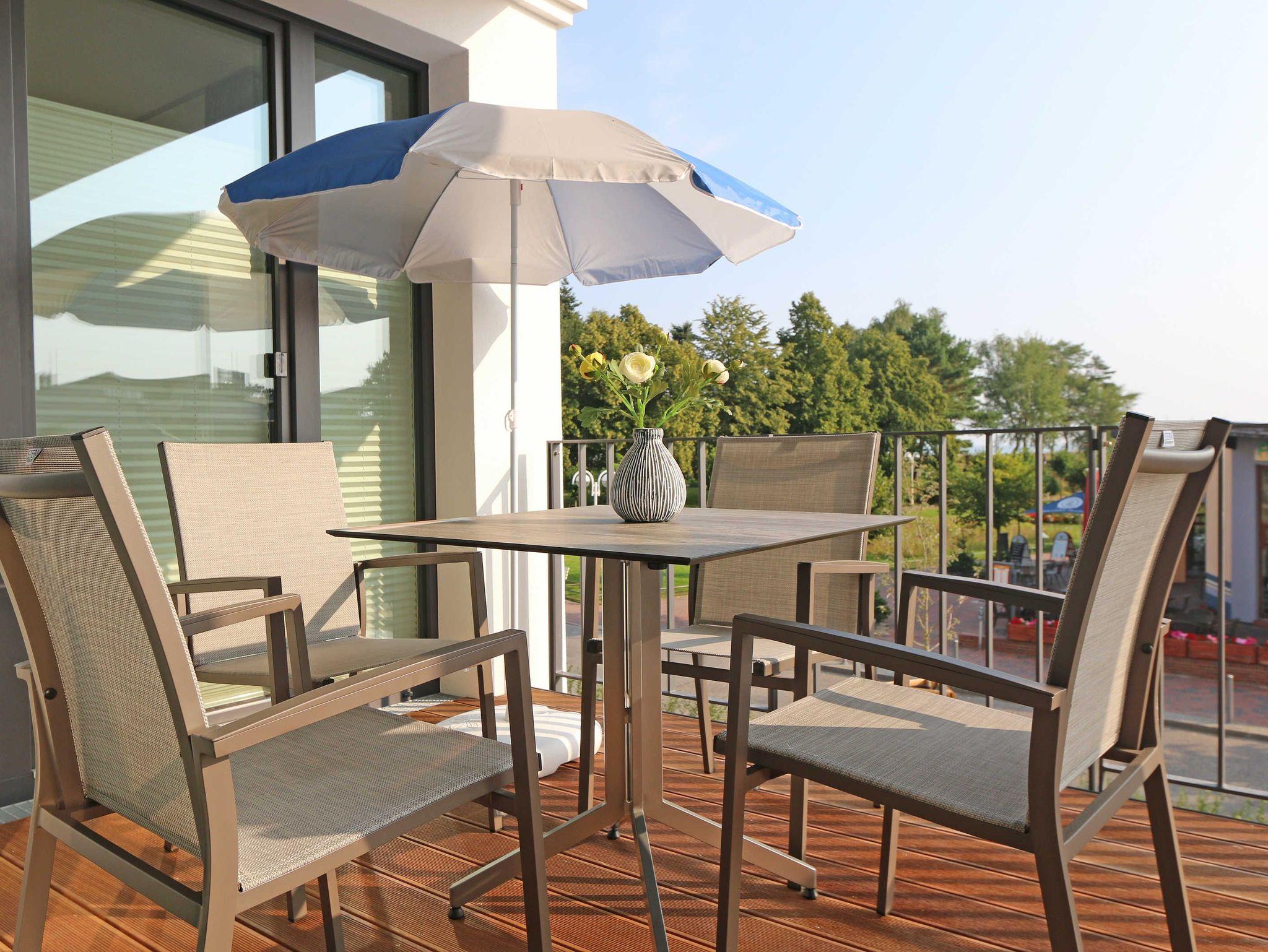Exklusive Nichtraucherferienwohnung Morgensonne mit Balkon und Meerblick in Baabe, nur 100m vom feinsandigen Strand entfernt.