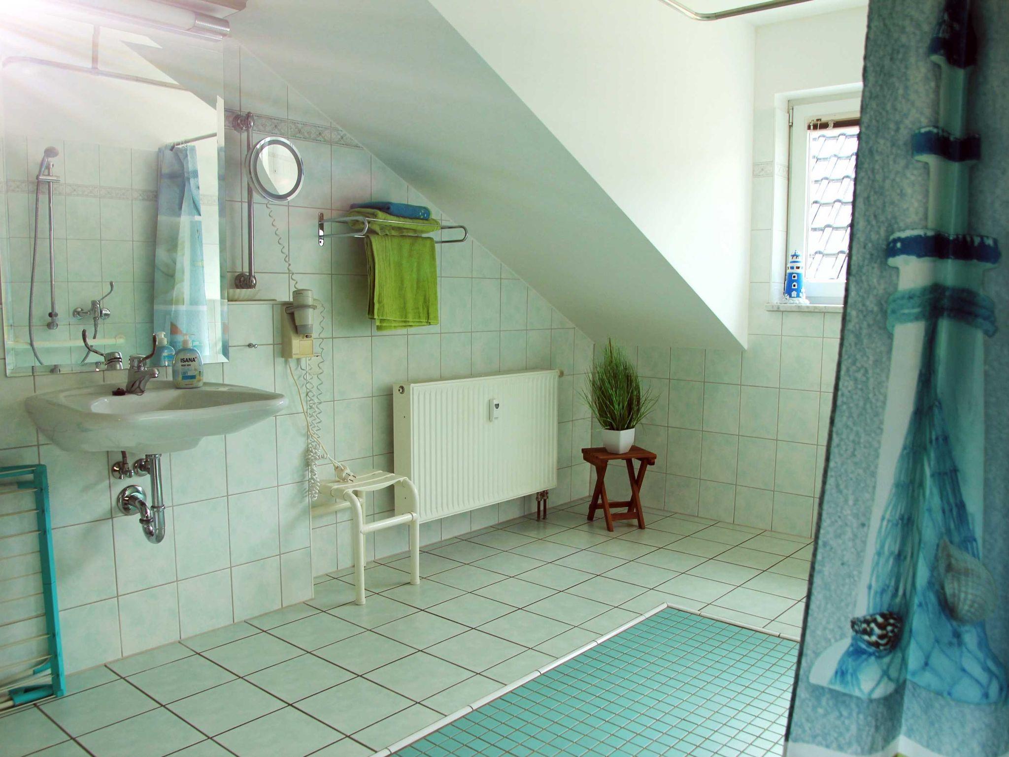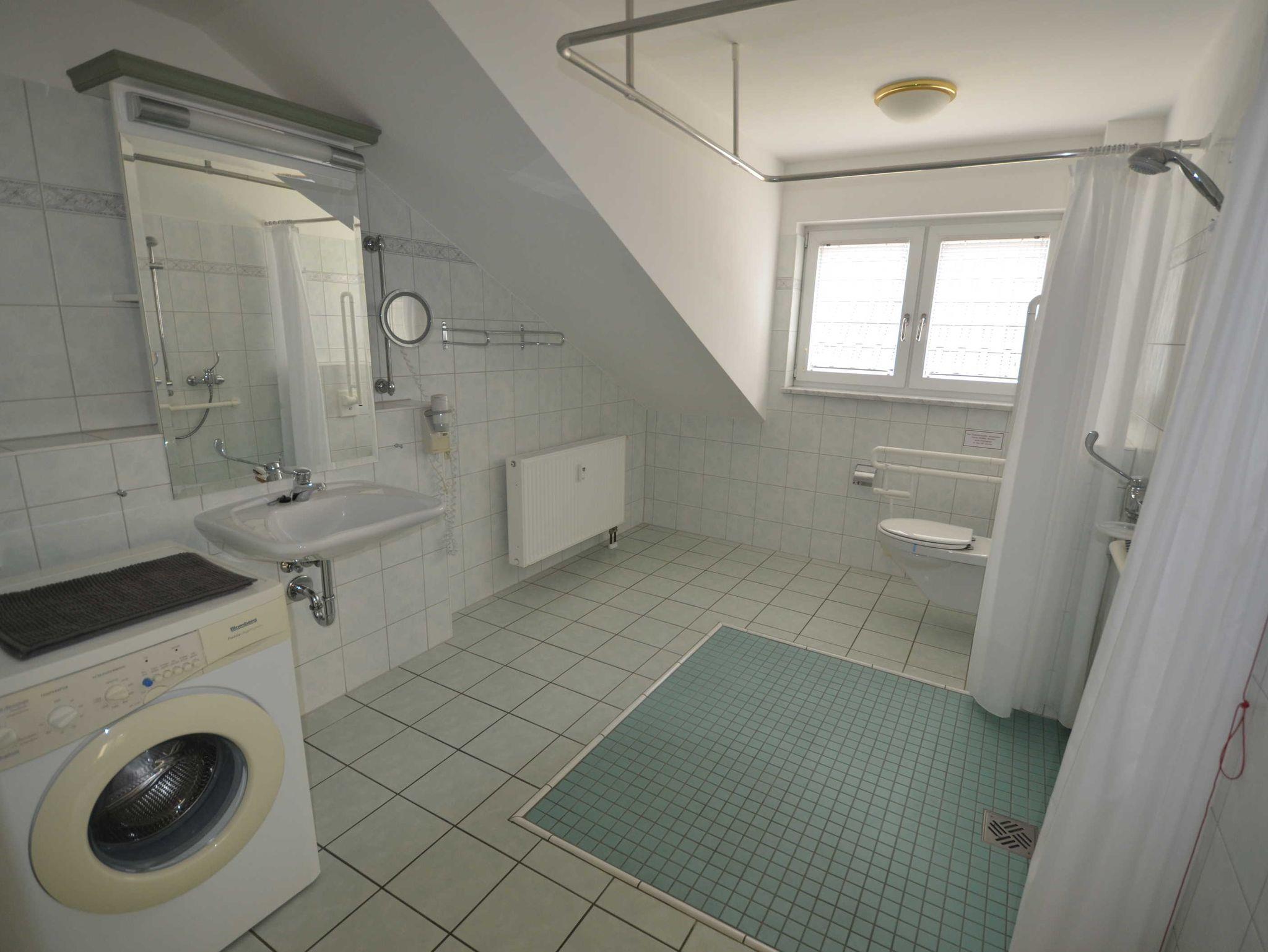 Das komplette Appartement ist barrierefrei und somit rollstuhlgerecht ausgestattet. Sämtliche Einrichtungen wie Spüle, Herd, Waschbecken, etc. sind unterfahrbar. Die Dusche und alle Türschwellen sind ebenerdig und barrierefrei passierbar. Ins Dachgeschoss gelangen Sie mittels integriertem Aufzug im Treppenhaus. Egal, ob Türbreiten oder Handgriffe von Türen und Fenstern, Badeinrichtung, Küchenzeile oder Schlafbereich, überall wurde darauf geachtet, den Belangen von Rollstuhlfahrern gerecht zu werden und zudem ausreichend Platz zum Wenden zu bieten.