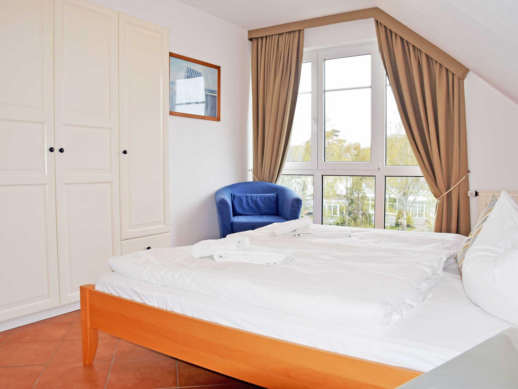 Die beiden Schlafzimmer sind mit einem bequemen Doppelbett (180 x 200cm) mit Nachttischen und Leselampen sowie einem Kleiderschrank ausgestattet. Ein kleines Kinderreisebett und ein Hochstuhl können auf Wunsch kostenlos zur Verfügung gestellt werden. Bei Ihrer Anreise liegen frische Handtücher bereit und die Betten sind bereits mit Bettwäsche bezogen.