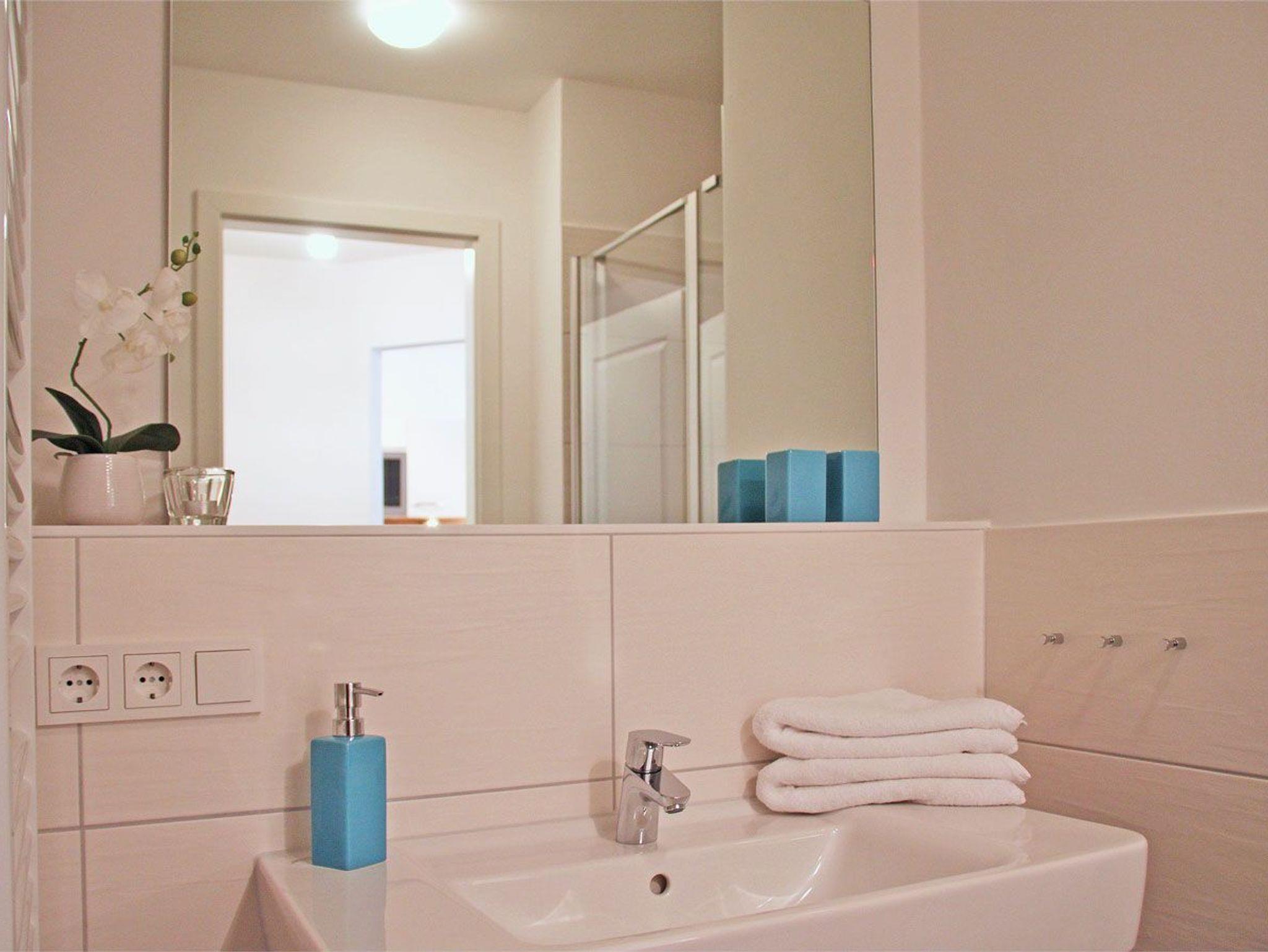 Die Wohnung ist bequem mit dem Fahrstuhl erreichbar; die Dusche im Bad ist ebenerdig.