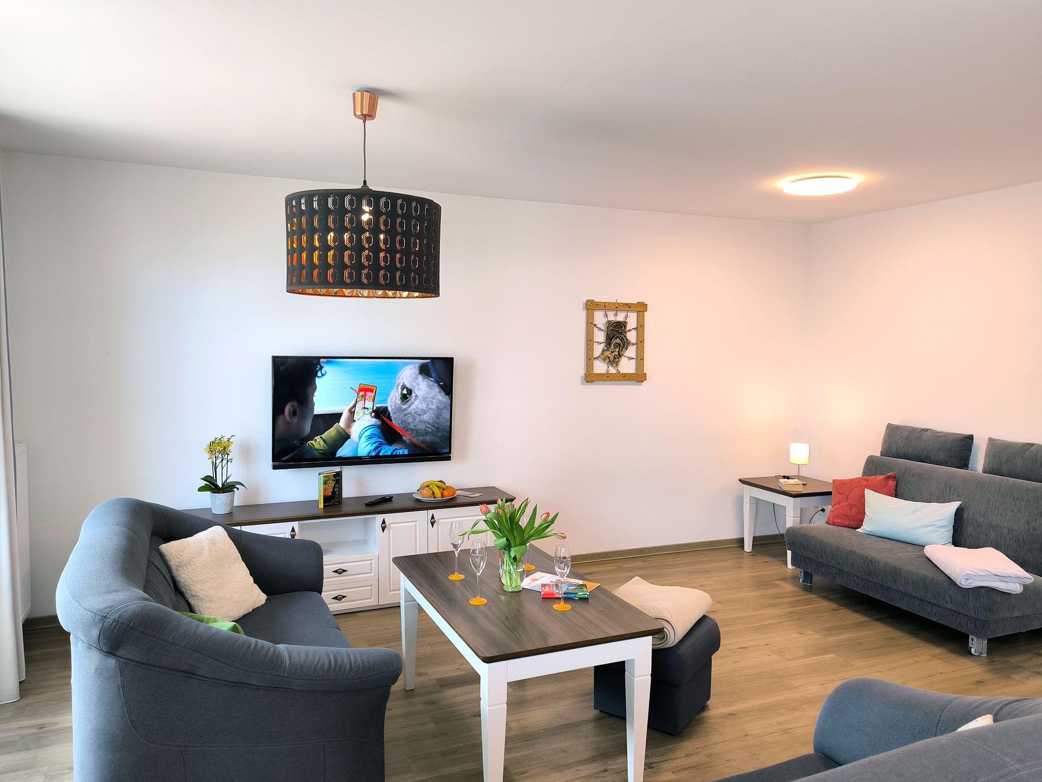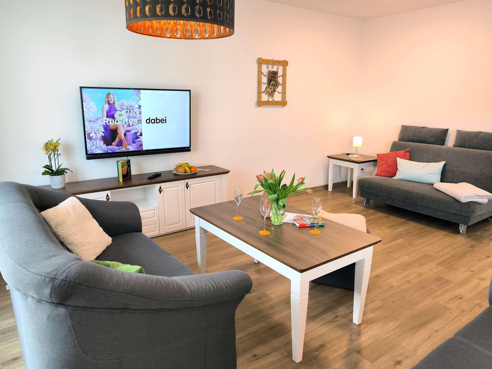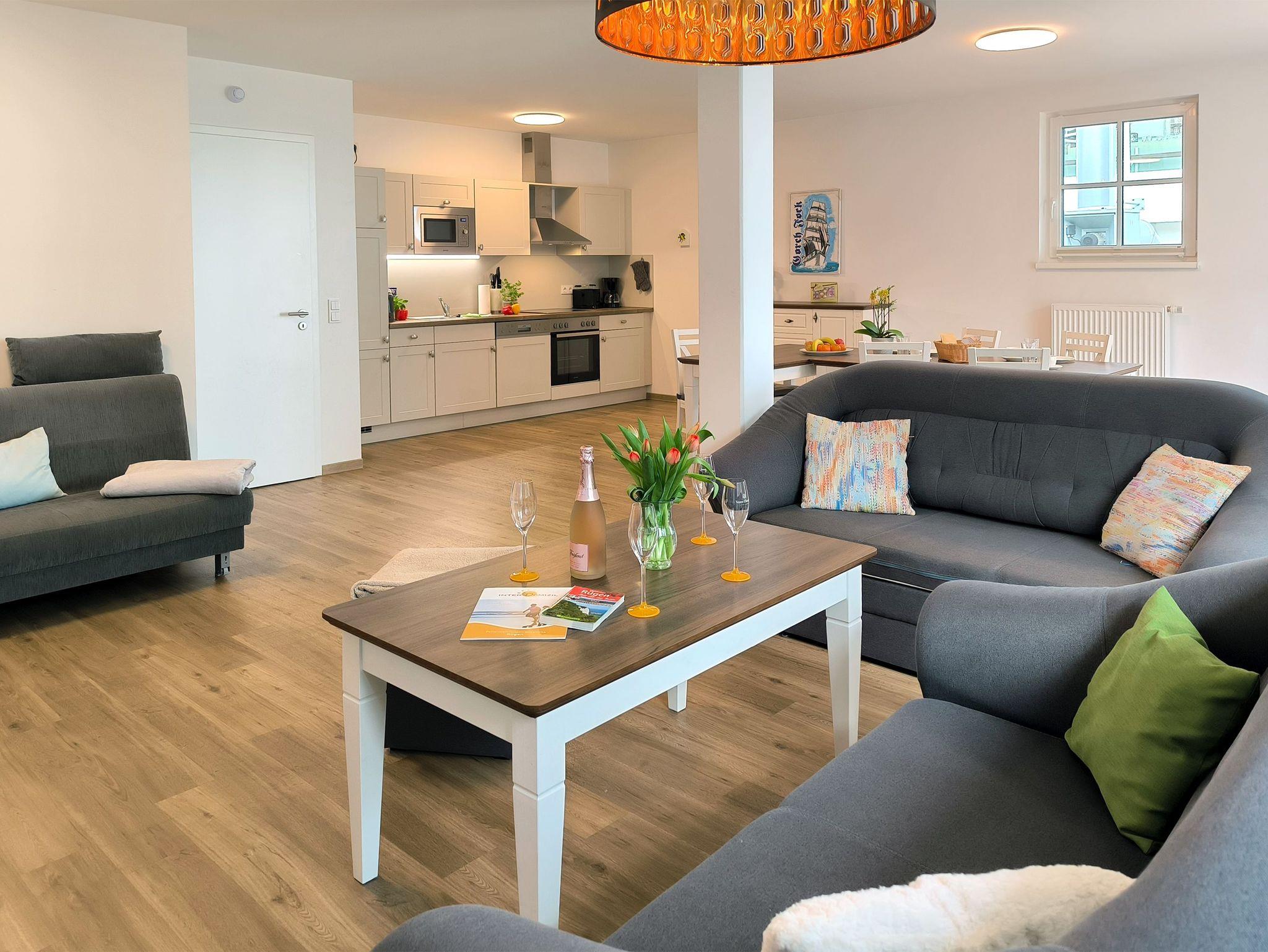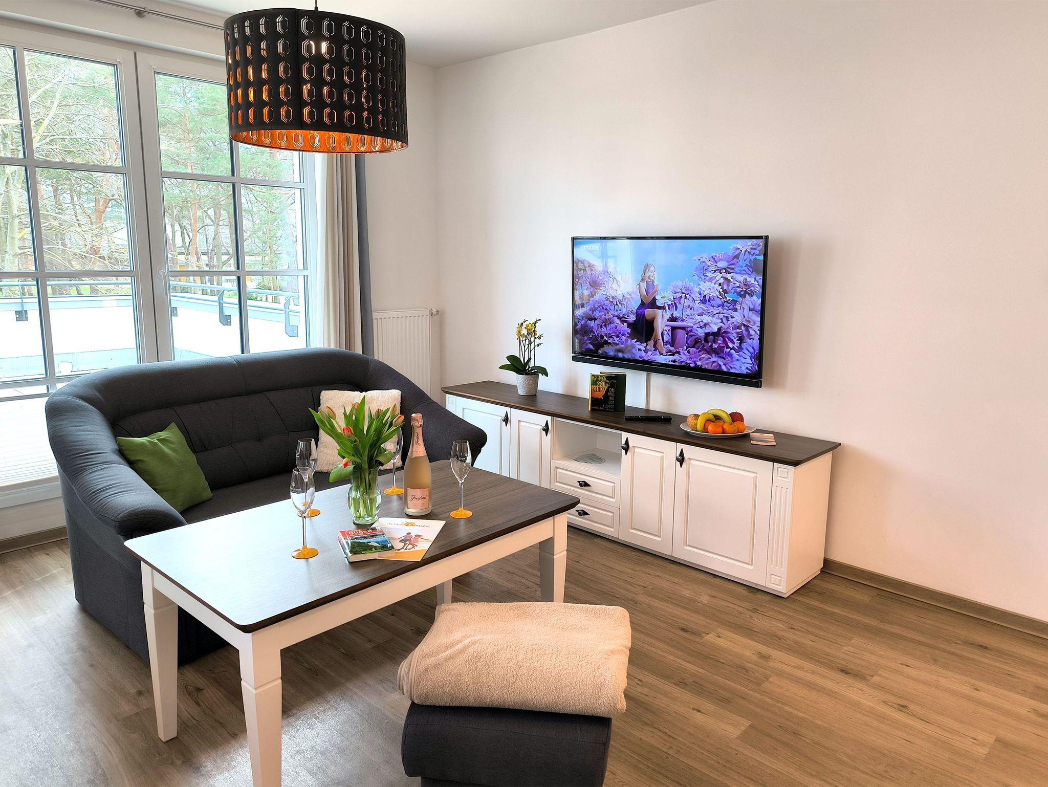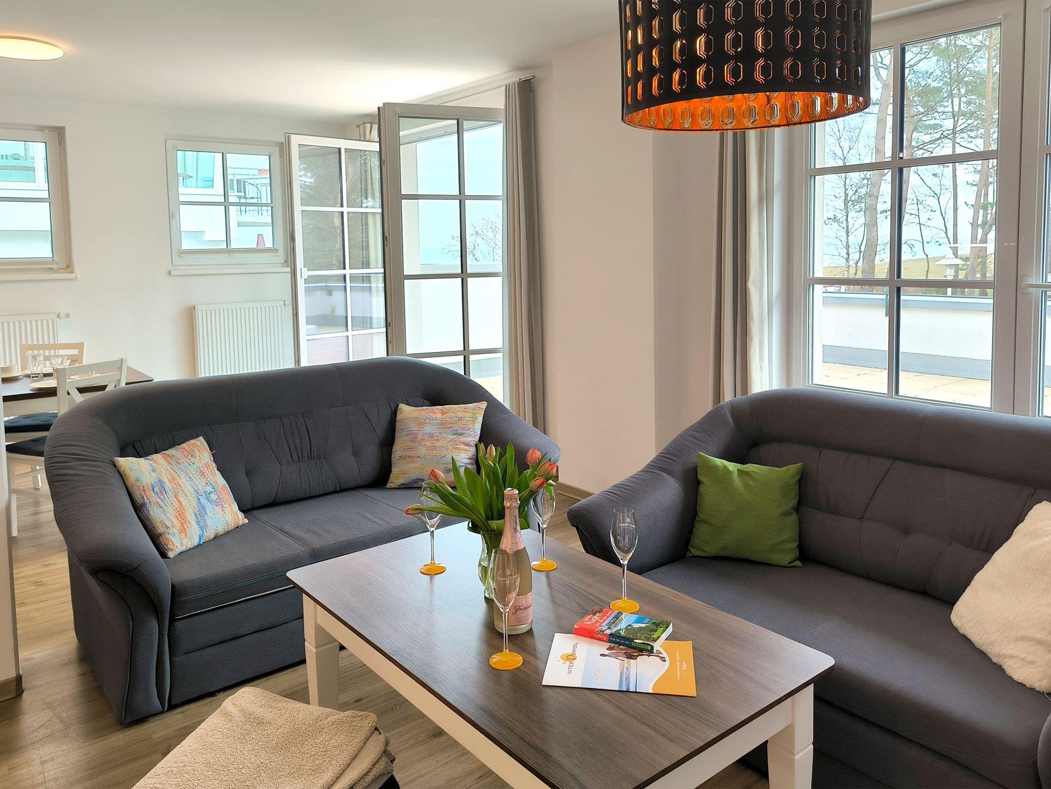 Genießen Sie eine stilvolle 3-Zimmer-Ferienwohnung mit Meerblick direkt am Strand von Baabe.