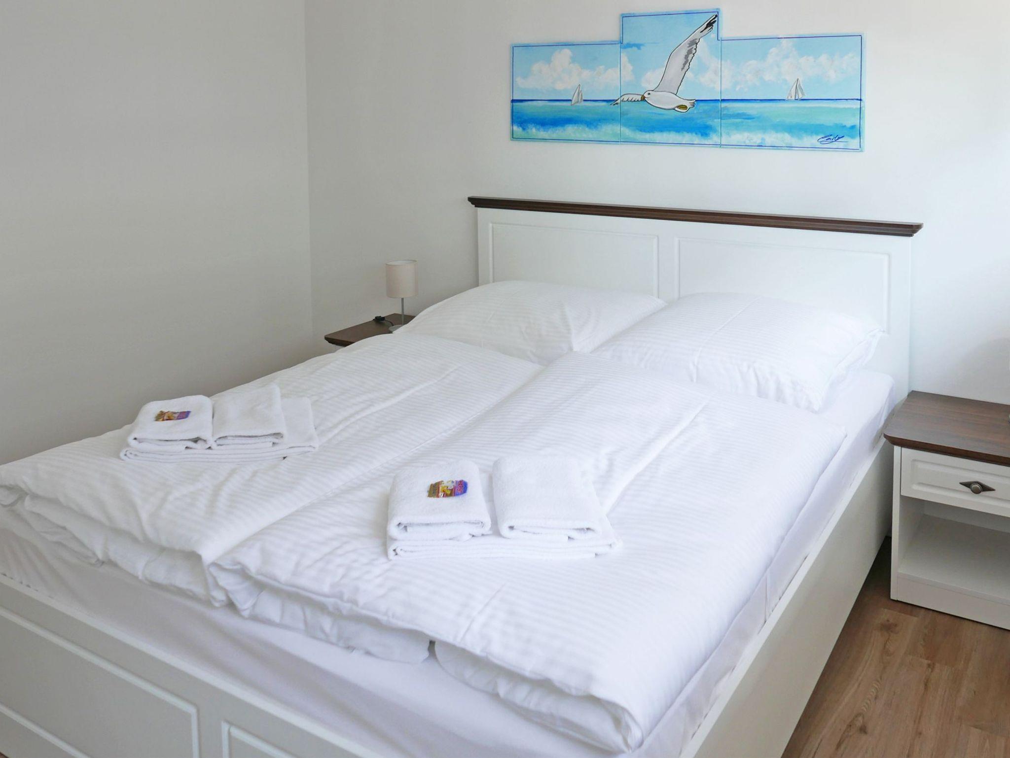 Meerblick ist hier garantiert. Herrlich große 3 Zimmerwohnung für bis zu 6 Personen. Genießen sie den tollen Blick aufs Meer vom Balkon und vom Wohnzimmer. Die ganze Wohnung ist mit geweißten Holzmöbeln ausgestattet.